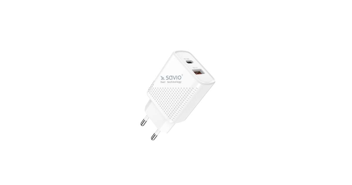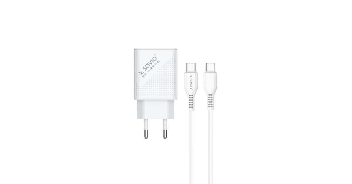 Ładowarka SAVIO LA05 PD QC 3.0 1xUSB 1xUSB-C 18W biała + kabel USB-C USB-C