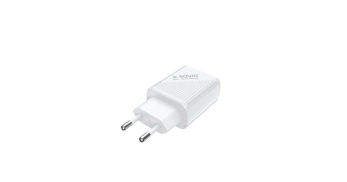 Ładowarka SAVIO LA05 PD QC 3.0 1xUSB 1xUSB-C 18W biała + kabel USB-C USB-C opis