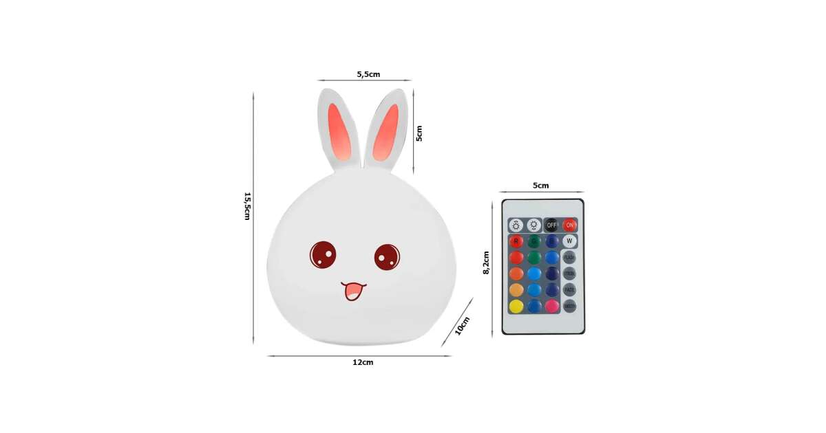 Lampka nocna LED w kształcie króliczka z pilotem, baterią, 5-kolorowym oświetleniem, ładowaniem USB, 1W, 12 cm, biała opis
