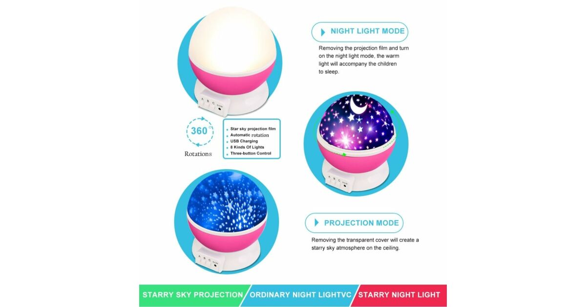 Ten magiczny projektor zamienia pokój dziecięcy w rozgwieżdżone niebo, pomagając maluchom spokojnie zasnąć i mieć piękne sny. Funkcja obrotu i 17 różnych trybów oświetlenia zapewnia oszałamiające wrażenia wizualne, pobudzając wyobraźnię i ciekawość.