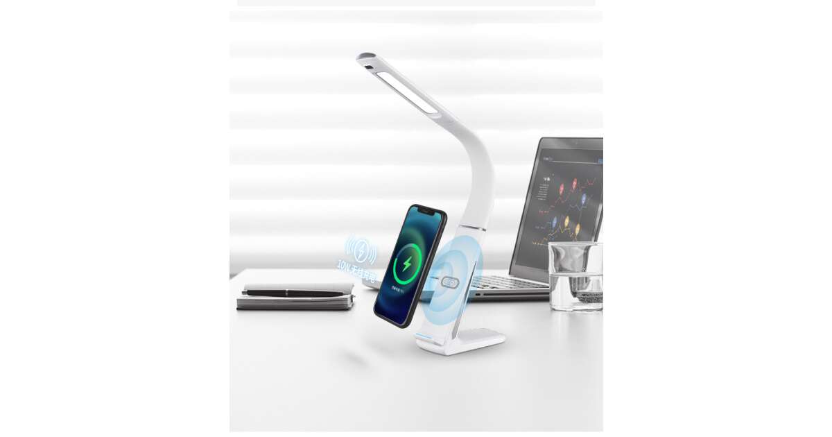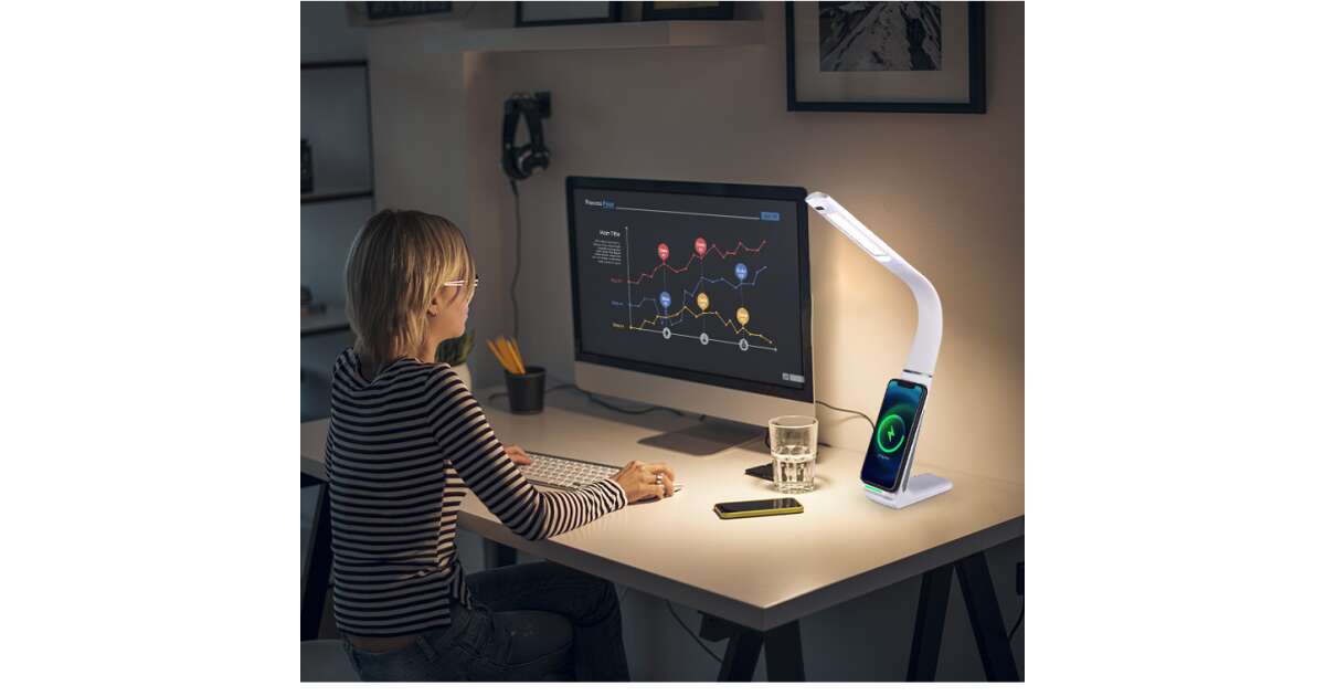 Lampka biurkowa z diodą LED SML TX 75, ładowanie bezprzewodowe 10W IOS lub telefon z systemem Android, port USB 5V/2.1A, ochrona oczu, elastyczne ramię regulowane oświetleniem 180° i ściemnia