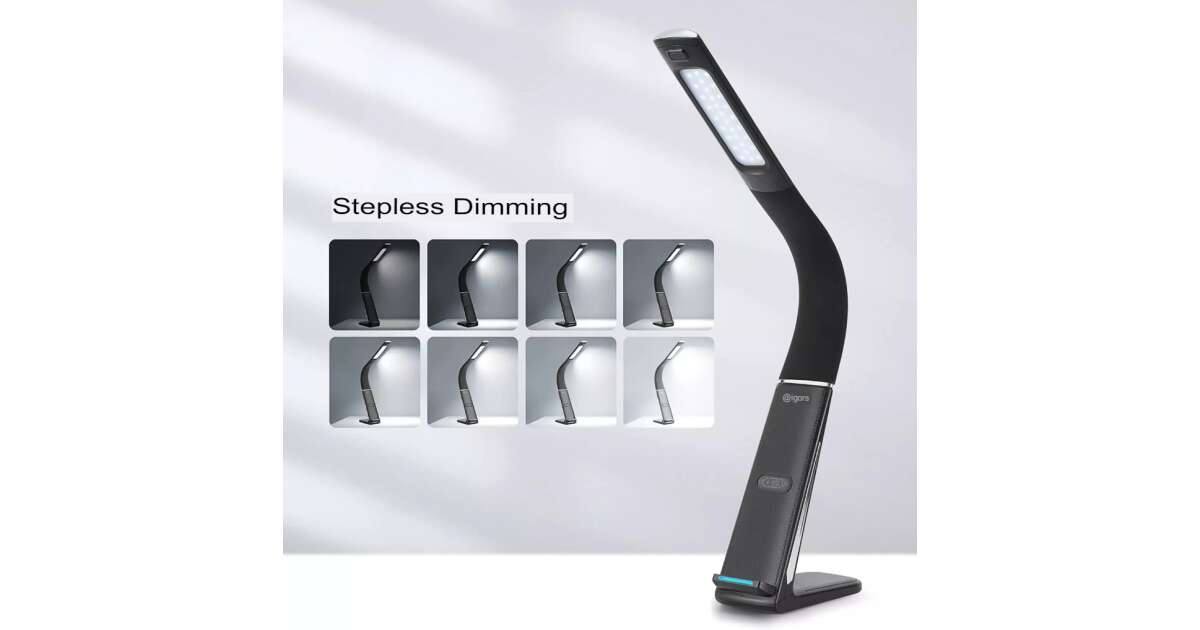 Lampka biurkowa z diodą LED SML TX 75, ładowanie bezprzewodowe 10W telefon IOS lub Android, port USB 5V/2.1A, ochrona oczu, elastyczne ramię regulowane oświetleniem 180° i regulacja intensywn