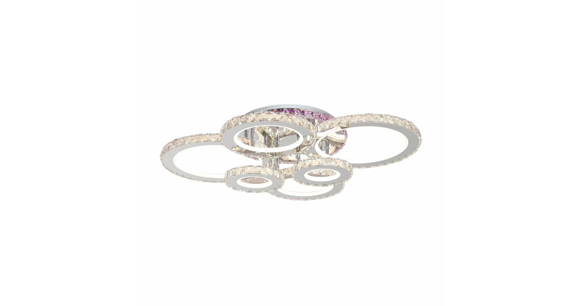 Żyrandol LED z pilotem i kryształem NOVA ROTONDA RGB 152W, 6 okręgów, zimne/ciepłe/neutralne światło, ściemnialny, błyszczący chrom