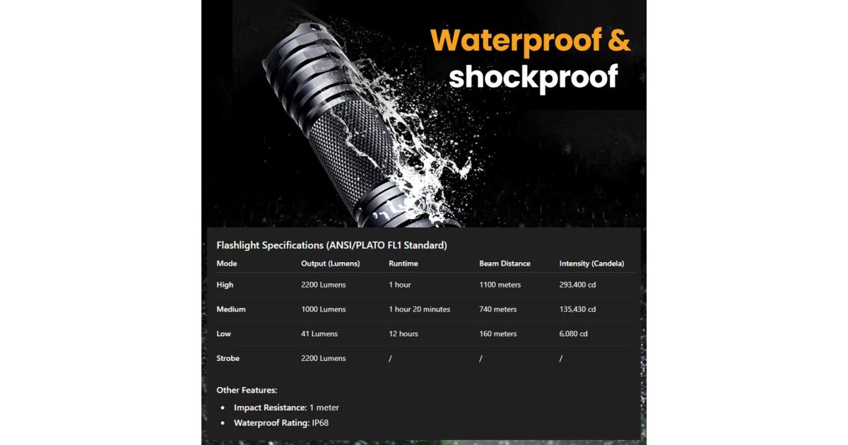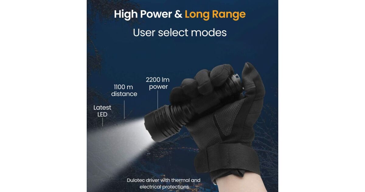 Latarka Dulotec Convoy C8+MAX to prawdziwa potęga, zapewniająca jasność do 2200 lumenów i zasięg do 1100 metrów. To idealny wybór do polowania, wędkowania, wędrówek, zadań związanych z bezpieczeństwem i codziennego użytku.