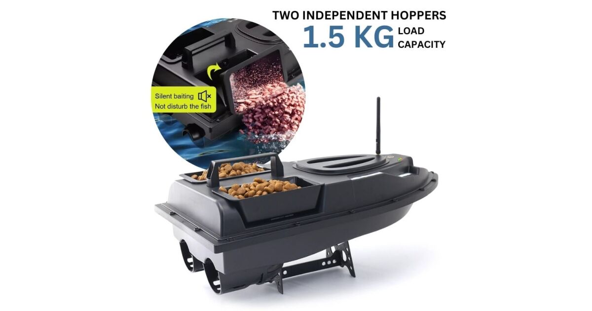 Ta inteligentna łódka zanętowa rewolucjonizuje wędkarstwo! Dzięki dwóm niezależnie sterowanym komorom (o łącznej pojemności 1,5 kg) możesz dostarczać zanętę do kilku miejsc jednocześnie. Pilot 2,4 GHz pozwala precyzyjnie sterować łodzią z odległości do 500 metrów, a wbudowany autopilot i żyroskop zapewniają stabilny ruch. Akumulator o dużej pojemności (12000 mAh) zapewnia około 4 godzin pracy, a wbudowane światła LED ułatwiają nocne wędkowanie.