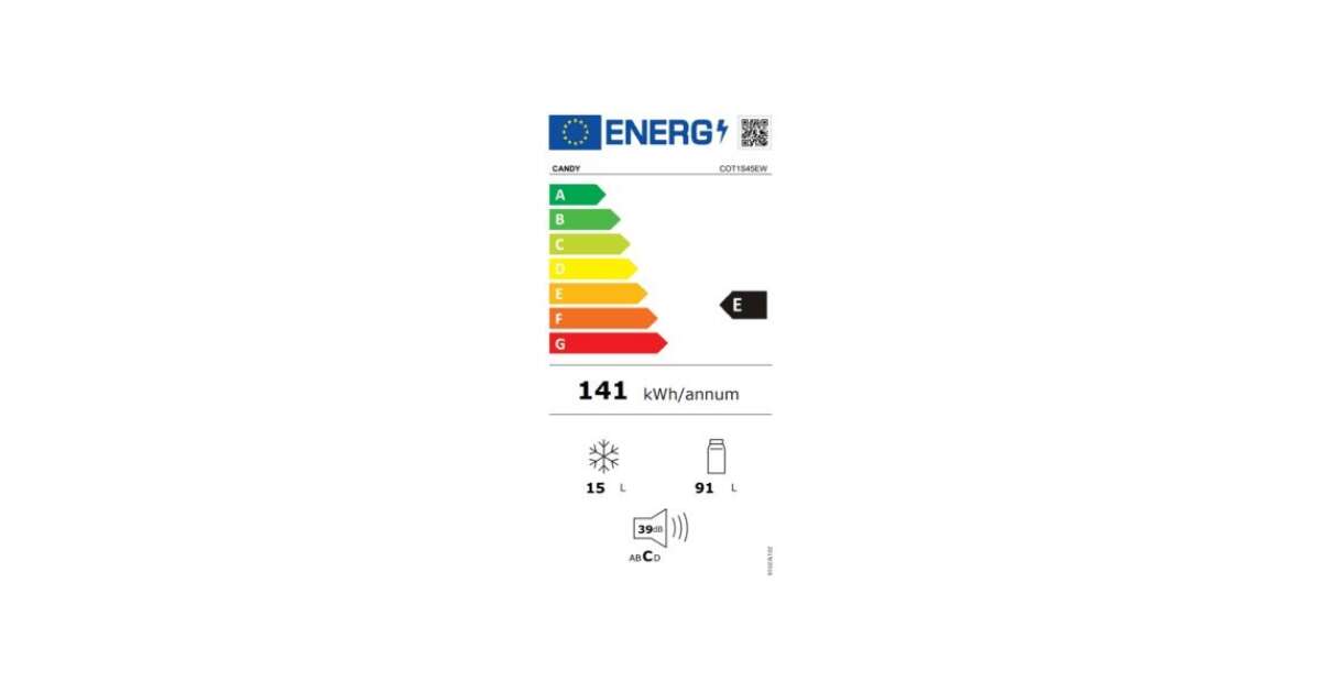 COT1S45EW BiałaSzukasz małej lodówki do domku na działce? Może chcesz uzupełnić wyposażenie stancji? Doskonałym wyborem będzie biała lodówka Candy COT1S45EW o wymiarach 84 × 50 × 57 cm. Dzięki kompaktowym rozmiarom nie zajmuje dużo miejsca – bez obaw zmieści się w niewielkiej kuchni lub aneksie kuchennych w pokoju.