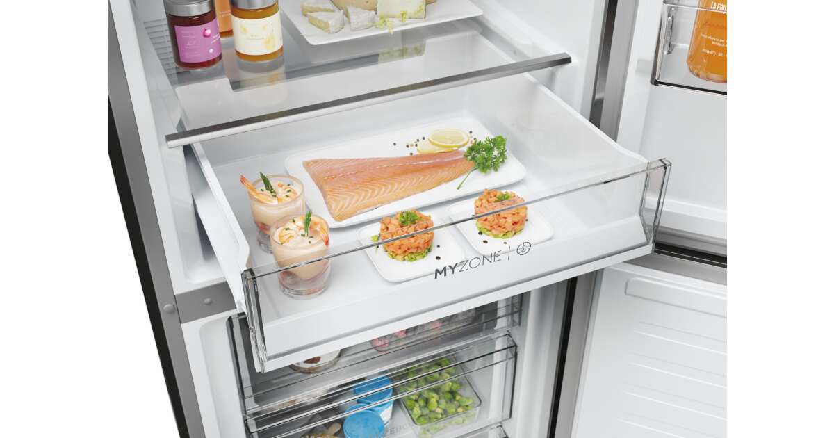 Maksymalna pojemność Zwolnij więcej miejsca! Dzięki sprytnie zaprojektowanej szerokości 60 cm ta lodówka oferuje dodatkową pojemność, idealną do przechowywania dużych ilości żywności lub przygotowywania się na spotkania z przyjaciółmi i rodziną. Innowacyjne składane półki z łatwością dostosowują się do potrzeb przechowywania, zapewniając efektywne wykorzystanie każdego centymetra przestrzeni.