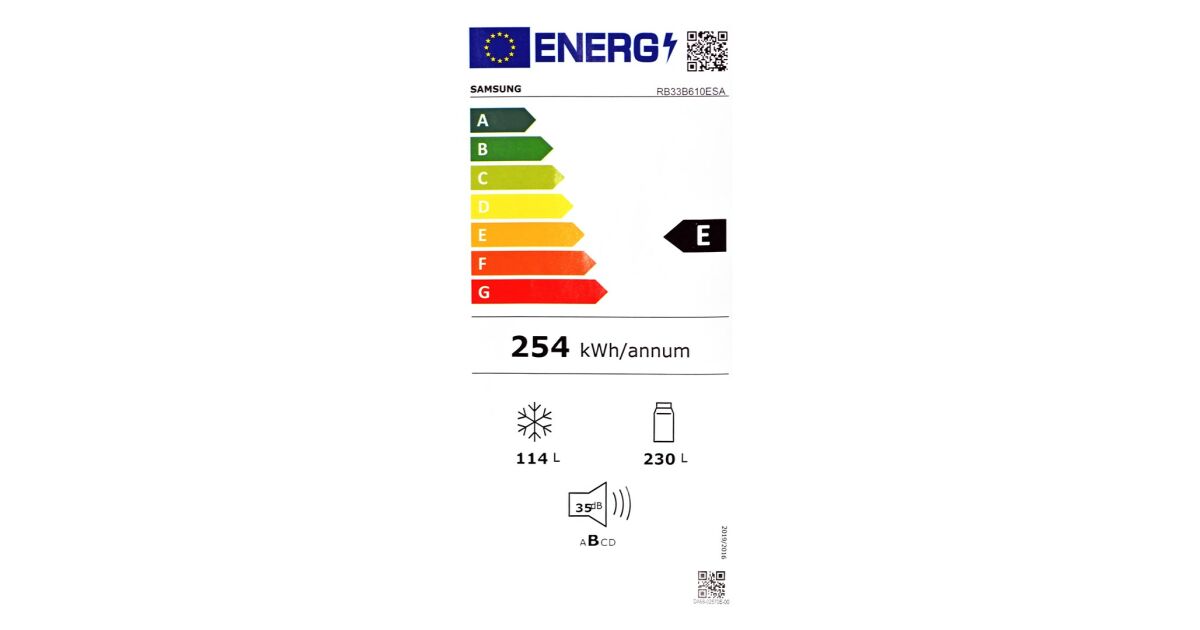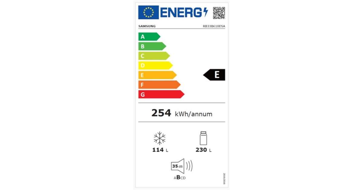 -Lodówka, Samsung RB33B610ESA/EF, Lodówka, Lodówko-zamrażarka, 344L (230l/114l), Efektywność energetyczna E, SpaceMax, No Frost, Wszechstronne chłodzenie, DIT opis