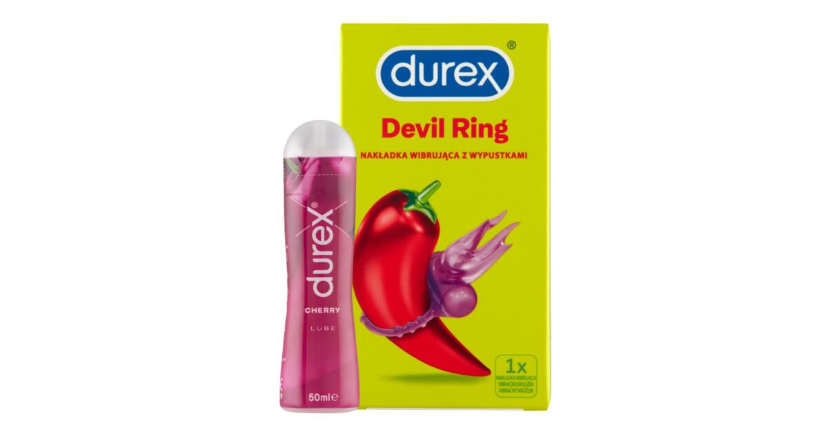Zawartość opakowania: Pierścień wibrujący Durex Little Devil Żel nawilżający Durex Play Cheeky Cherry 50ml