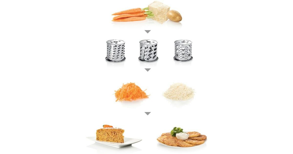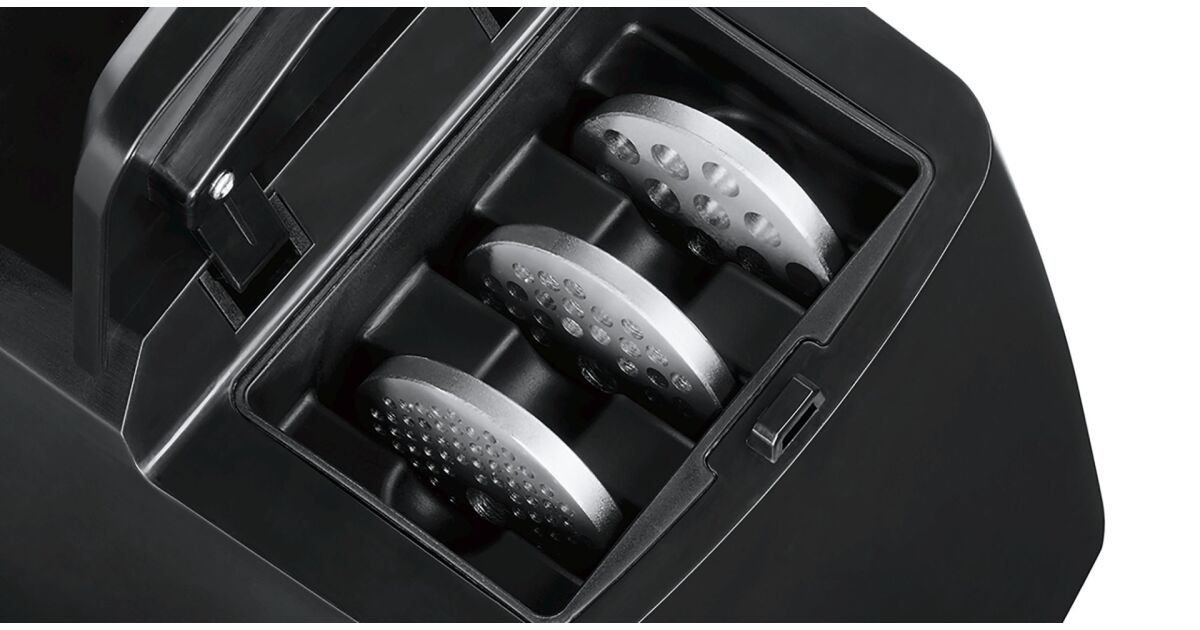 - Wszechstronne akcesoria: Tarcze do krojenia, tarcia, lejek do kiełbasy i do kebbe – przygotujesz mnóstwo różnych potraw!