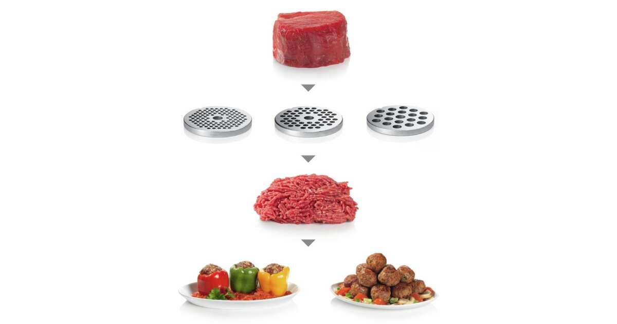 - Ponad 10 funkcji: Mielenie mięsa, mielenie ryb, siekanie warzyw i sera, robienie kiełbasy i wiele więcej! ⚙️