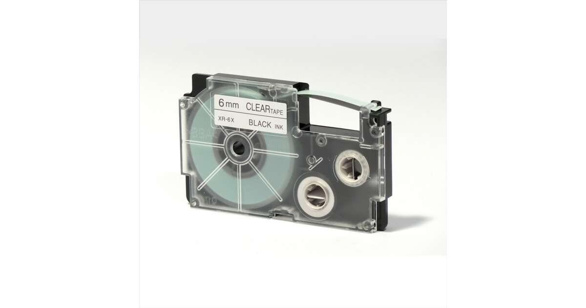 Kaseta Casio XR-6X1: 6 mm szerokości, 8 m długości, przezroczysta taśma z czarną tuszem 🖨️