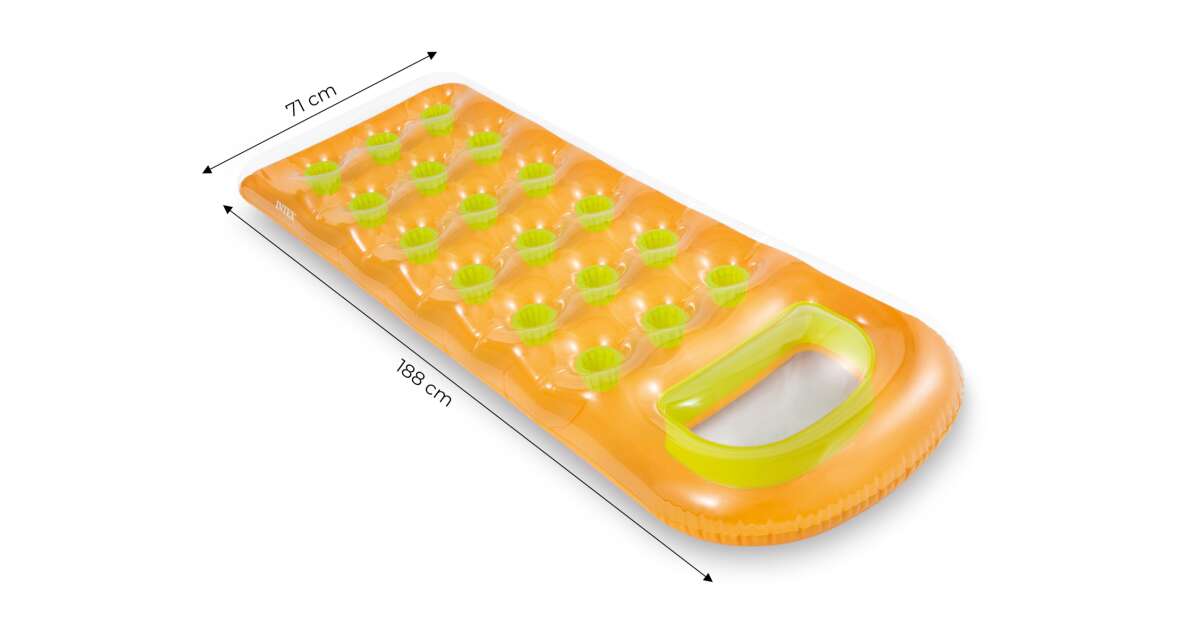 W pełni wykorzystaj letnie dni z tym wygodnym, dmuchanym materacem Intex! Idealny do basenu, jeziora lub na plażę. Płaska konstrukcja zapewnia stabilność i wygodę, a okienko pozwala podziwiać podwodny świat.