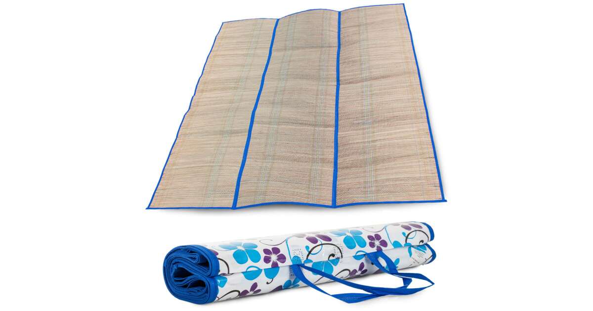 Izolowana termicznie mata plażowa z trzciny, 150x170, wzór niebieskie kwiaty zakupy: