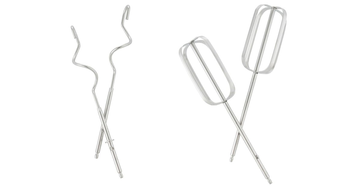 - 2 sztuki końcówek do ubijania i 2 sztuki haków do wyrabiania ciasta 🥣
