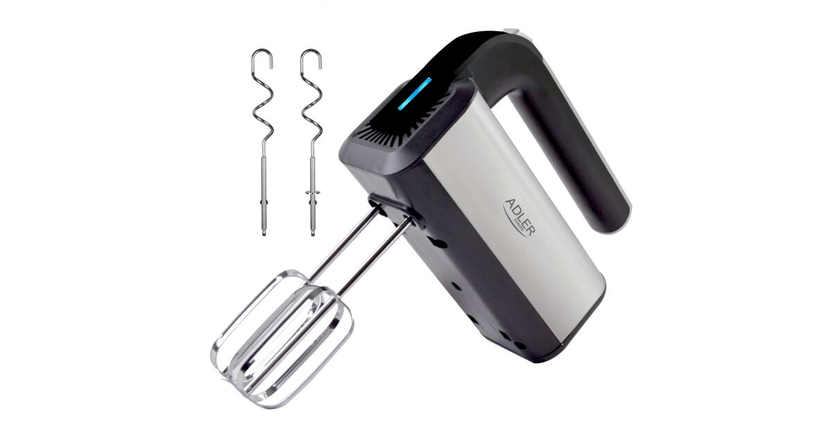 Mikser ręczny ADLER, 800W, 5 prędkości, funkcja TURBO, stal nierdzewna, 20x19x9cm