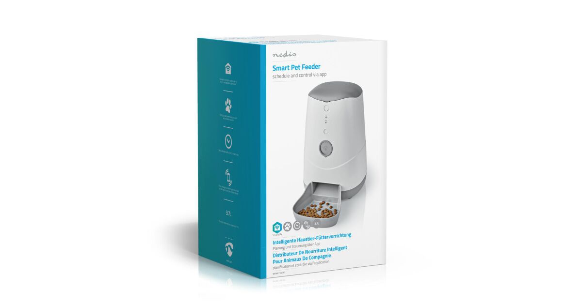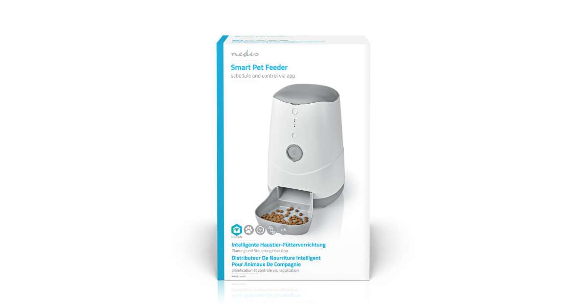 Zautomatyzuj karmienie swojego pupila dzięki temu inteligentnemu podajnikowi! Dokładnie zaprogramujesz, o której godzinie i ile jedzenia ma otrzymać Twój zwierzak (w porcjach ok. 10 ml). Funkcja zdalnego karmienia pozwala sterować podajnikiem ze swojego smartfona, gdziekolwiek jesteś.