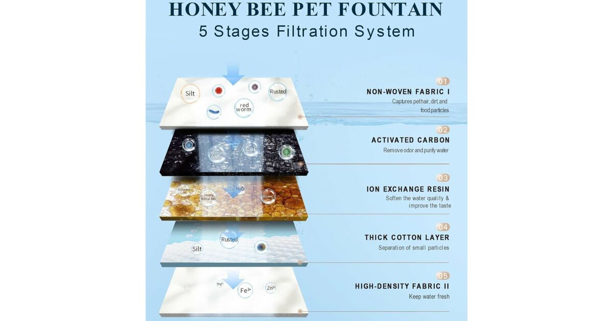 Zapewnij swojemu pupilowi stały dostęp do świeżej i czystej wody dzięki tej fontannie o pojemności 2 litrów. Fontanna może działać nawet tydzień bez ładowania, dzięki czemu idealnie nadaje się na krótkie wypady. Wykonana z wysokiej jakości tworzywa ABS, jest trwała i łatwa w czyszczeniu. Miękki wskaźnik LED przyciąga uwagę pupila i pozwala łatwo znaleźć fontannę w ciemności. Okienko poziomu wody pozwala na bieżąco monitorować spożycie wody przez pupila. Gęsty strumień wody zachęca zwierzaka do częstszego picia. Pięciostopniowy system filtracji skutecznie usuwa zapachy, zmiękcza wodę i zatrzymuje sierść, brud i resztki jedzenia. Udoskonalona pompa z magnetycznymi łopatkami redukuje hałas i poprawia cyrkulację wody, redukując straty.