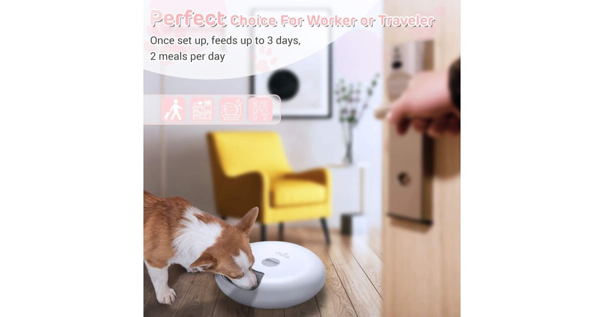 Zapomnij o zmartwieniach związanych z karmieniem: Jesteś zbyt zajęty, aby regularnie karmić swojego pupila? Ten podajnik pomoże Ci ustawić godziny posiłków i kontrolować porcje dla Twojego futrzanego przyjaciela. Urządzenie może zaplanować do 6 posiłków dziennie, 2 posiłki dziennie przez 3 dni lub 1 posiłek dziennie przez 6 dni (rozumiesz, o co chodzi). 6 oddzielnych przegródek na karmę mokrą i suchą: Tacki na karmę bez BPA, przeznaczone do kontaktu z żywnością, dbają o zdrowie Twojego pupila. Są wyjmowane i łatwe do mycia w zmywarce. Możesz również umieścić pod tackami wkład chłodzący, aby utrzymać jedzenie w niskiej temperaturze (każda tacka mieści 170 g karmy; wkład chłodzący nie jest dołączony, zalecane są małe wkłady o wymiarach 7,62 x 7,62 cm). Podwójne zasilanie: Podajnik może być zasilany bateriami 3C lub zasilaczem, co pozwala na ustawienie go w dowolnym miejscu. Zasilacza i baterii można używać jednocześnie. Baterie są niezbędne do działania podajnika w przypadku awarii zasilania (baterie nie są dołączone). Inteligentny panel cyfrowy z funkcją pamięci: Karmnik zapamiętuje ustawienia i umożliwia ustawienie regularnych harmonogramów karmienia w zależności od potrzeb za pomocą wygodnego panelu sterowania. Dzięki funkcji blokady ekranu Twoje zwierzęta nie będą mogły zmienić ani przerwać ustawień, gdy zainteresują się karmnikiem.