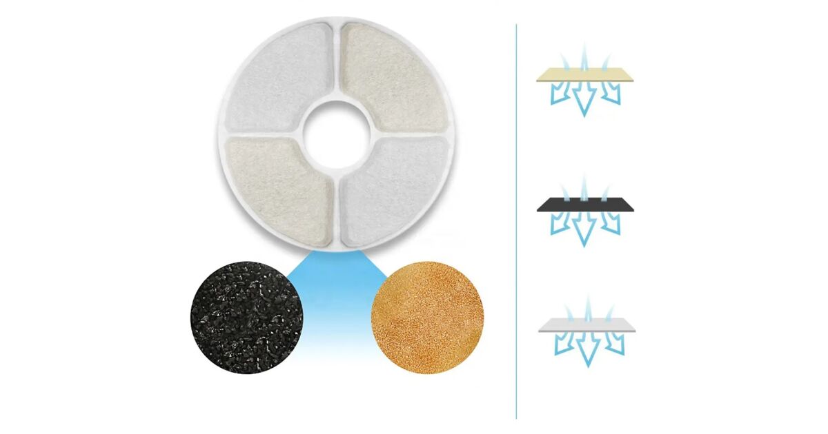 Ta automatyczna poidełka zapewnia Twojemu pupilowi stały dostęp do świeżej wody w atrakcyjnym designie fontanny. Dzięki dużemu, 2,4-litrowemu zbiornikowi na wodę, rzadziej będziesz musiał/a go napełniać, a cicha pompa zapewnia spokojną pracę w nocy. Wymienny system filtrujący gwarantuje zawsze czystą i zdrową wodę.