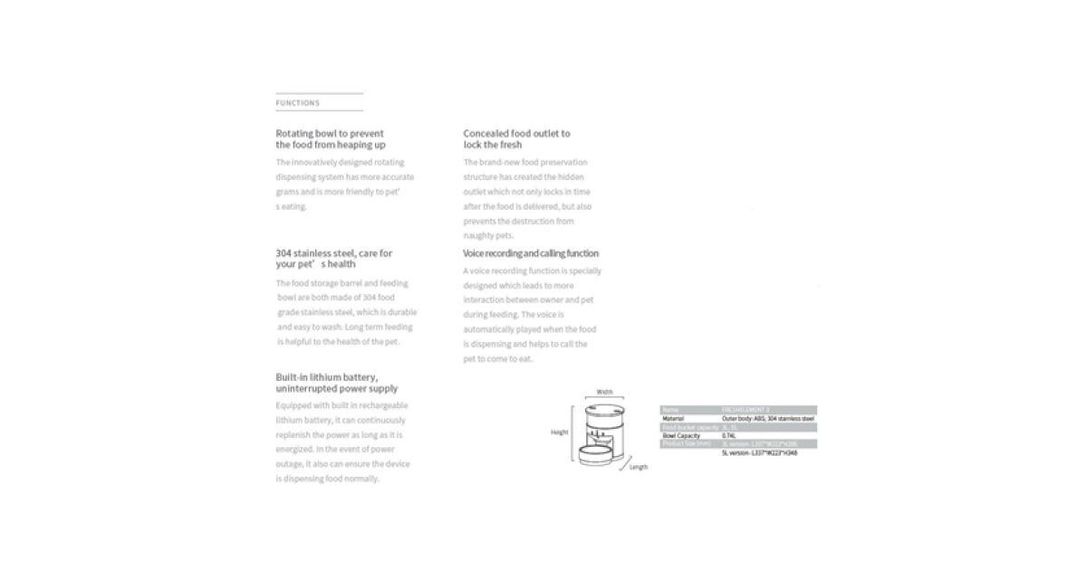 - ⏱️ Do 2 tygodni pracy: Wbudowany akumulator i zapasowy zasilacz zapewniają, że Twój pupil nie będzie głodny nawet w przypadku awarii zasilania.