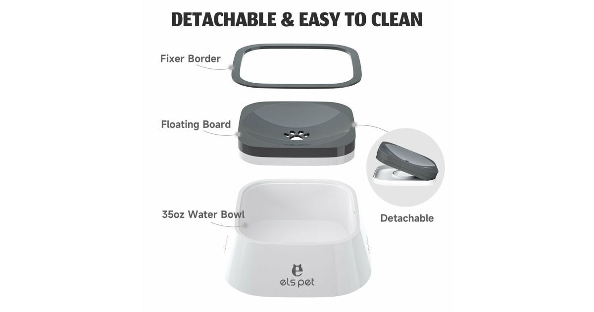 Pływający dysk spowalnia tempo picia przez pupila, zapobiegając zmoczeniu pyska i utrzymując jego sierść suchą i czystą. Zapobiega również przedostawaniu się kurzu, brudu i sierści do wody, utrzymując jej jakość. Bryzgoszczelna miska na wodę z podwójnym pływającym dyskiem zapobiega rozlewaniu, utrzymując podłogę suchą. Antypoślizgowe dno z czterema gumowymi powłokami zapewnia stabilność podczas picia. Idealna w podróży, łatwa w czyszczeniu dzięki wyjmowanym elementom. Wymiary: 16 x 18,54 x 7,87 cm, pojemność 1 l, co zapewnia nawodnienie przez cały dzień.