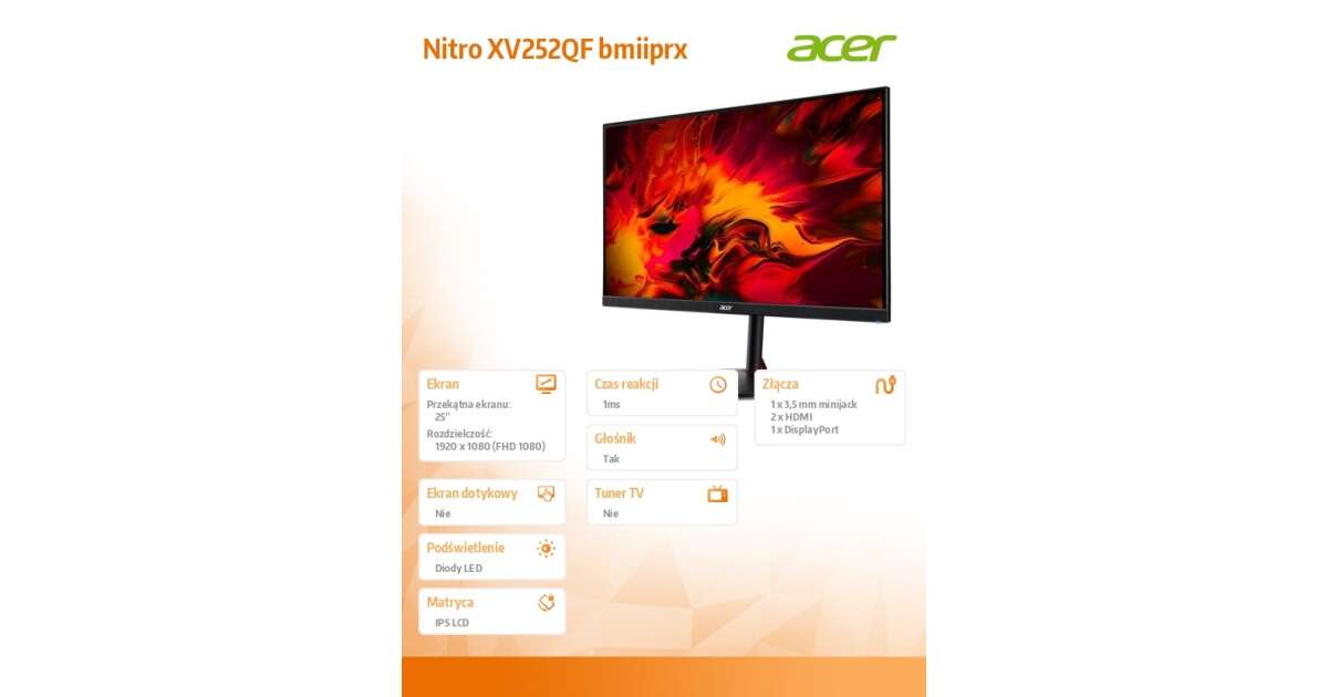 Acer 24,5" Nitro XV252QFbmiiprx ZeroFrame FreeSync Premium IPS 390Hz | 2 lata gwarancji | opis