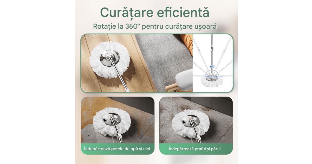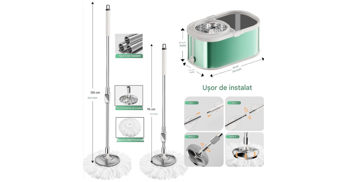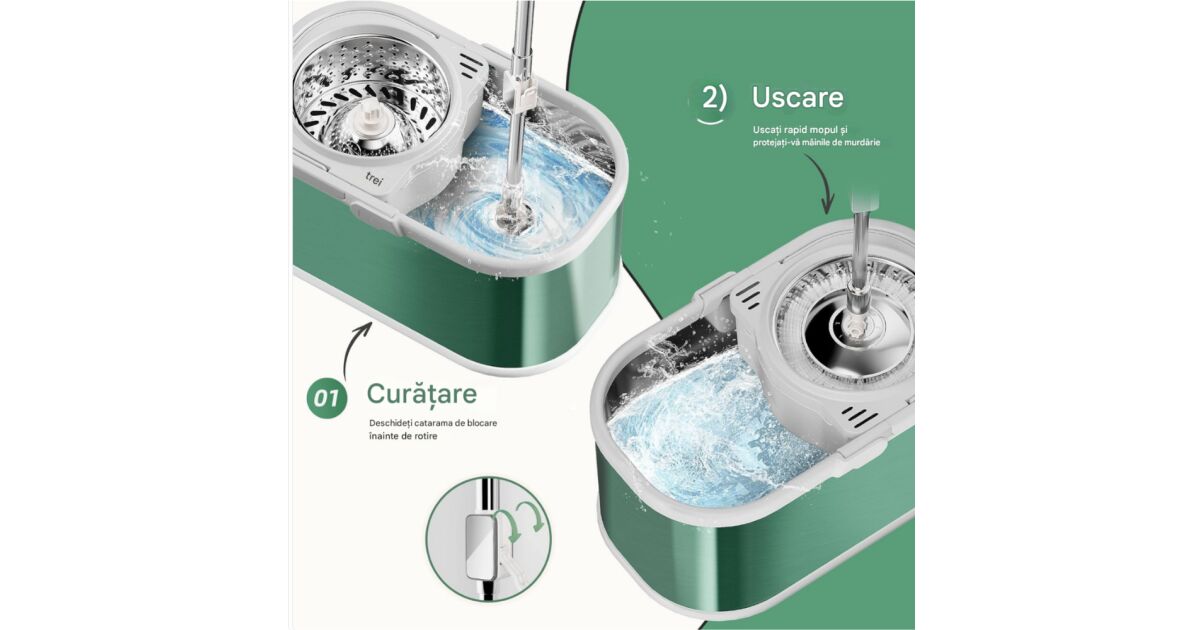 - Efektywne czyszczenie: System odwirowywania szybko usuwa nadmiar wody, dzięki czemu podłoga szybko schnie. 💧