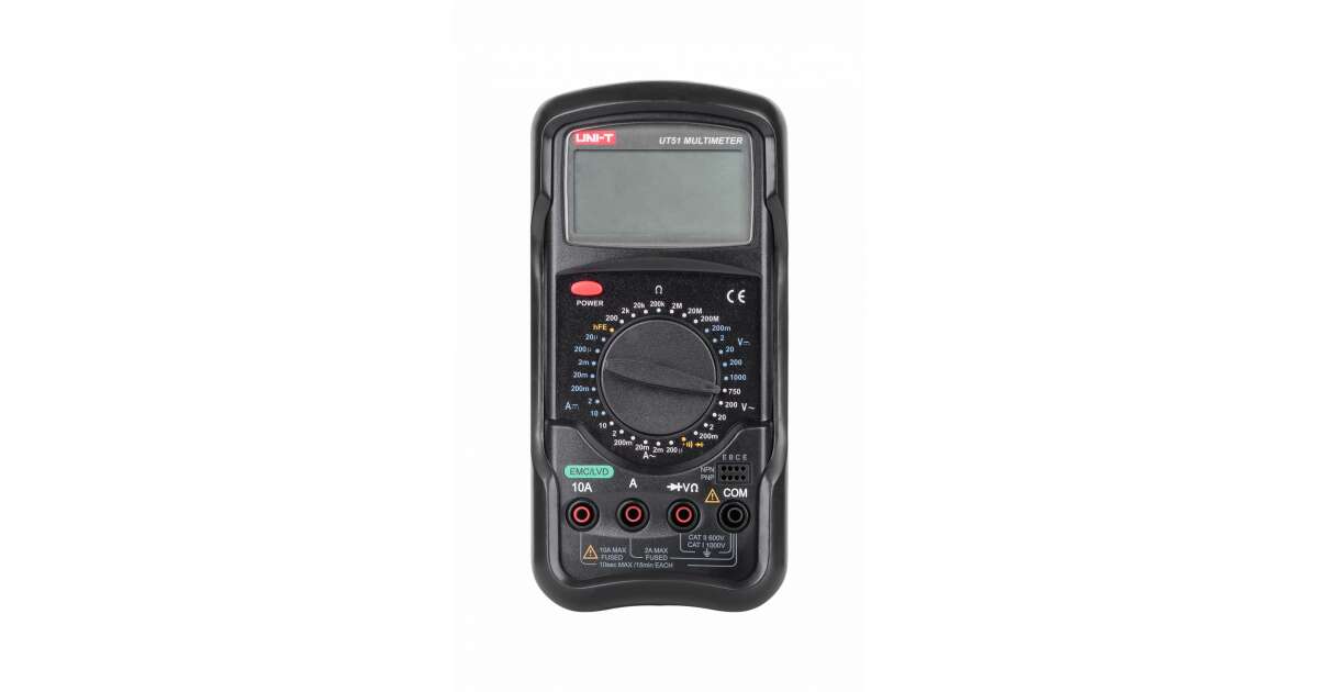 Miernik uniwersalny UT51Miernik uniwersalny UT51 to solidne i wszechstronne urządzenie, które doskonale sprawdzi się zarówno w warsztacie, jak i w zastosowaniach domowych. Dzięki precyzyjnym zakresom pomiarowym oraz dodatkowymi funkcjami, UT51 stanowi niezastąpione narzędzie do diagnostyki i analizy parametrów elektrycznych. Szeroki zakres pomiarówUT51 oferuje rozbudowane możliwości pomiarowe, obejmujące zarówno napięcie stałe (DC) do 1000 V, jak i zmienne (AC) do 750 V. Urządzenie umożliwia także pomiar natężenia prądu stałego i zmiennego, aż do 10 A. Szeroki zakres pomiaru rezystancji do 200 MOhm oraz funkcje takie jak test diod, pomiar hFE tranzystorów i sprawdzanie ciągłości obwodu, czynią z UT51 wszechstronne narzędzie diagnostyczne. Ręczna regulacja i wygoda użytkowaniaMiernik wyposażony jest w funkcję ręcznej zmiany zakresów pomiarowych, co pozwala na precyzyjne dostosowanie ustawień do potrzeb użytkownika. Wskaźnik niskiego poziomu baterii informuje o konieczności jej wymiany, co zapewnia niezawodność pracy. Duży, czytelny wyświetlacz o rozmiarze 33 x 65 mm ułatwia odczyt wyników, a solidna konstrukcja zapewnia trwałość urządzenia. Wytrzymała konstrukcja i akcesoriaUT51 cechuje się solidną budową o wymiarach 190 x 88 x 34 mm i wadze 560 g, co gwarantuje jego wytrzymałość w trudnych warunkach pracy. W zestawie z miernikiem znajdują się niezbędne akcesoria, takie jak bateria 9 V, przewody pomiarowe oraz holster, które zapewniają wygodę użytkowania i bezpieczne przechowywanie urządzenia.