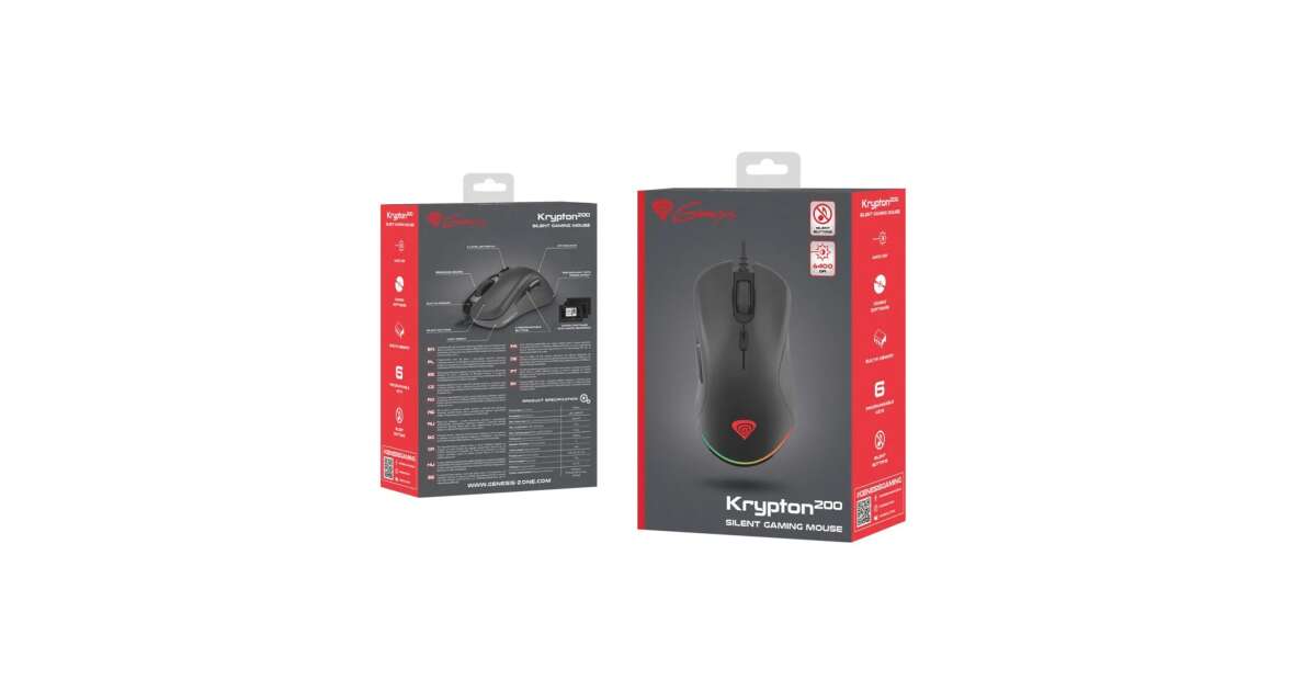 -Mysz, mysz do gier Genesis Krypton 200 Silent Optical 6400 DPI z oprogramowaniem w kolorze czarnym opis