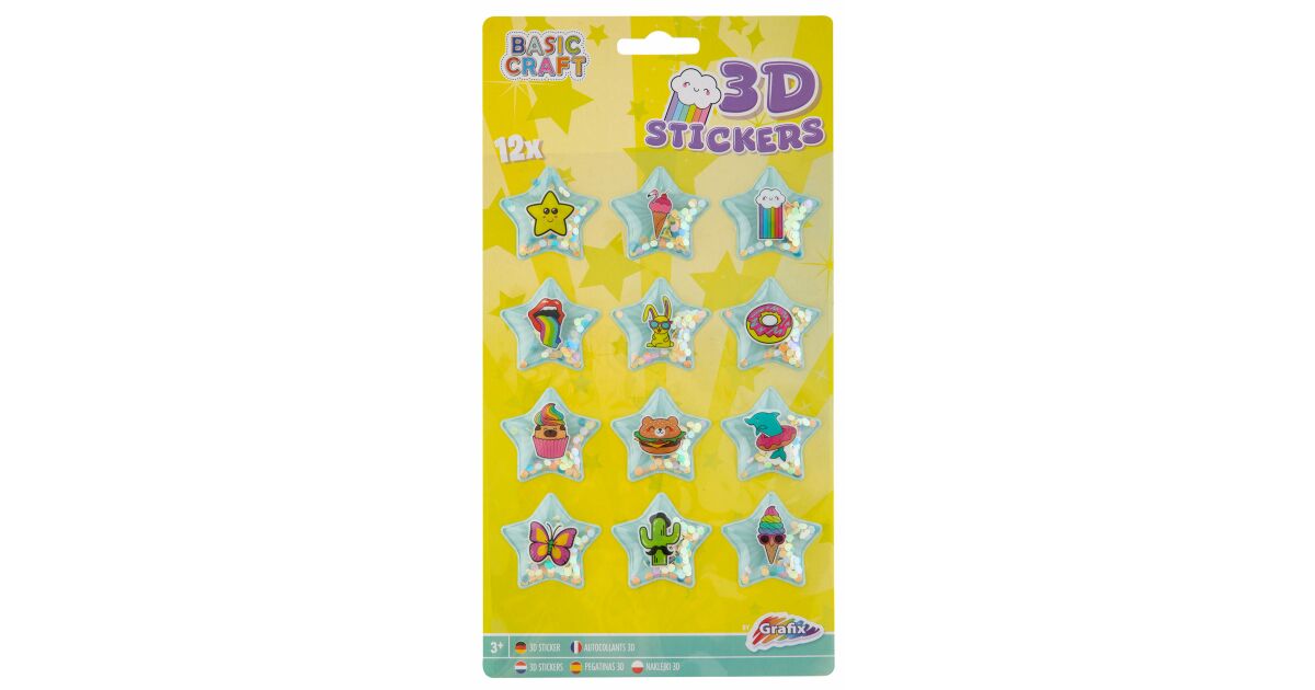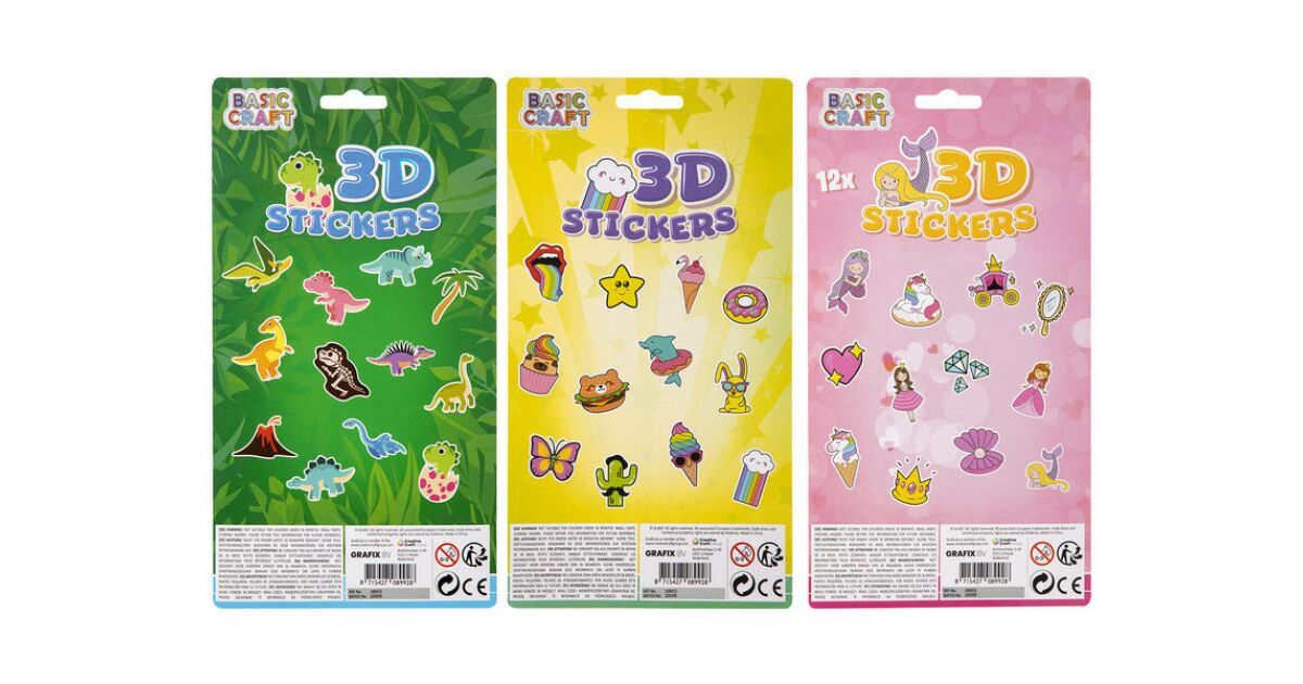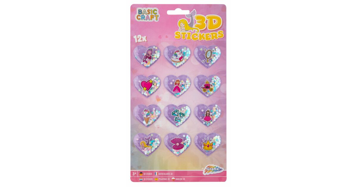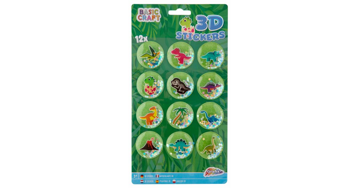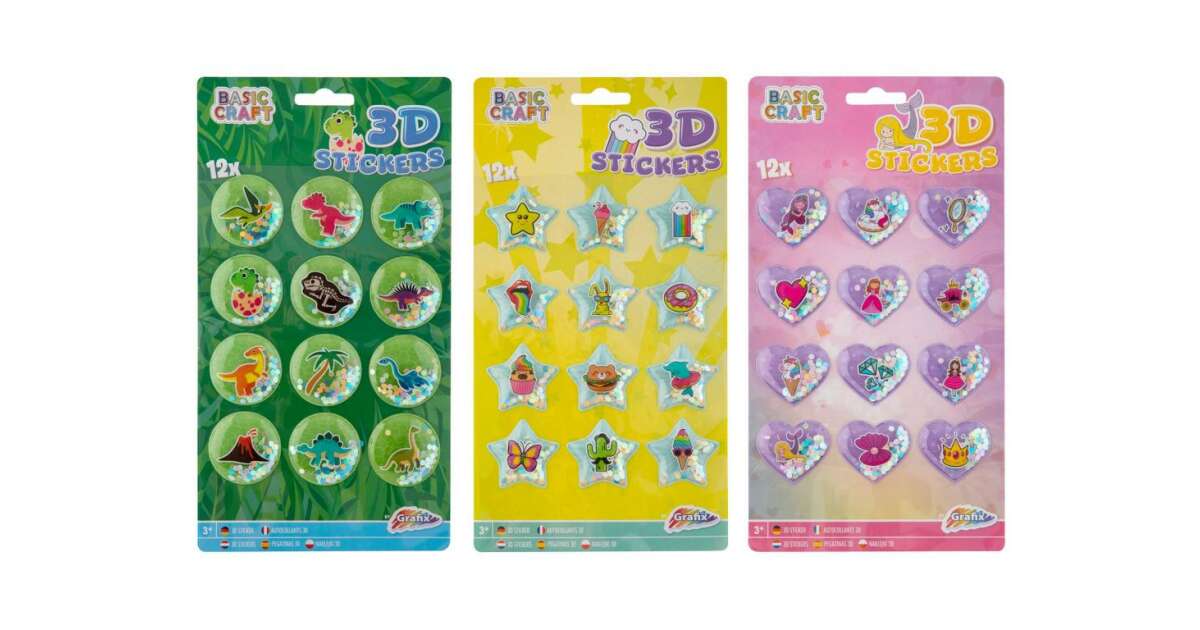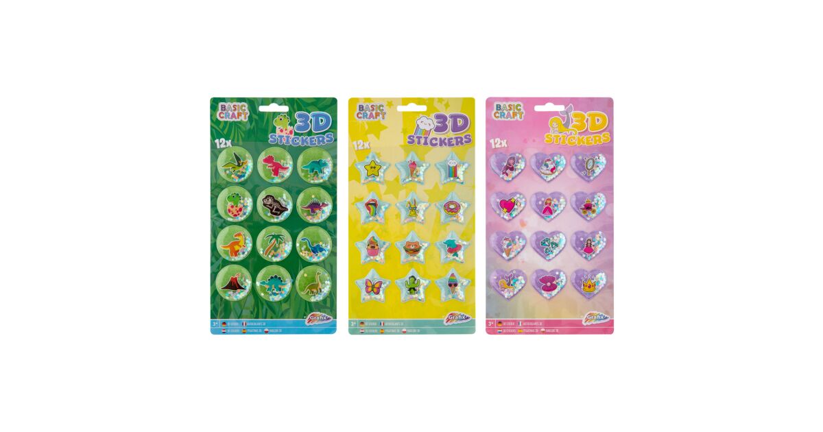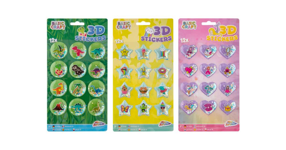 Te naklejki 3D Grafix są idealne dla każdego kreatywnego dziecka! W każdym opakowaniu znajduje się 12 błyszczących, trójwymiarowych naklejek w trzech różnych wzorach: dinozaury 🦖, gwiazdki ⭐ i księżniczki 👑. Przyklejaj je do książek, rysunków, prezentów – możliwości są nieograniczone!