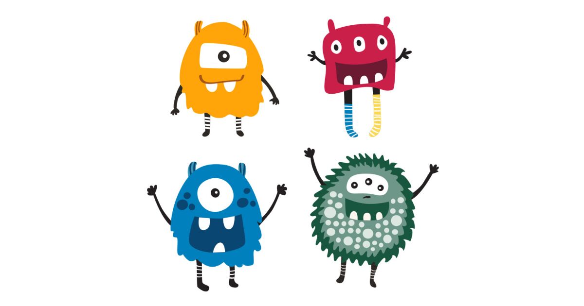 - 4 sztuki naklejek z potworami o różnych rozmiarach i kolorach