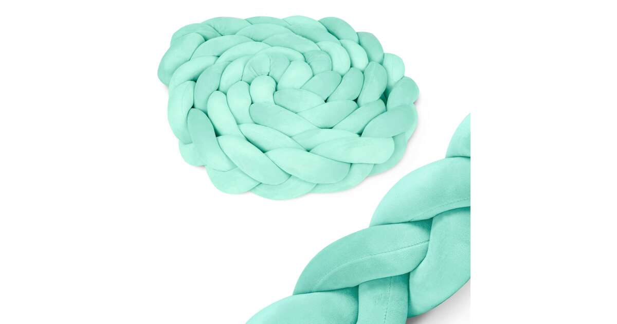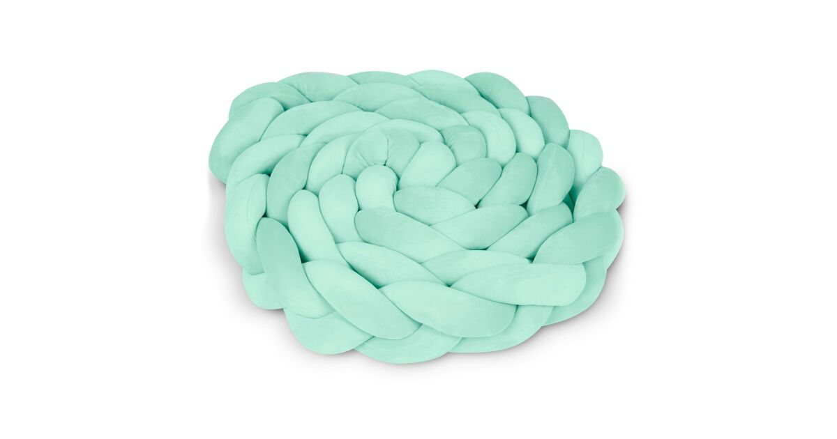 Ten 3-metrowy, miękki i wygodny ochraniacz do łóżeczka zapewnia idealną ochronę Twojego dziecka przed twardymi szczebelkami łóżeczka. Chroni maluszka przed przeciągami i zimnymi ścianami, jednocześnie ułatwiając mu siadanie i zapewniając spokojny sen. Mentolowy kolor i pleciony wzór to piękny dodatek do pokoju dziecięcego.