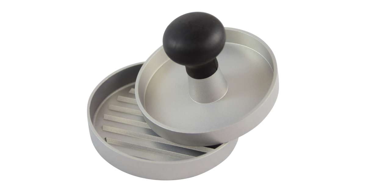 Doskonałe narzędzie do przygotowywania burgerów. Umożliwia błyskawiczne przygotowanie idealnego burgera. Dzięki jednolitemu rozmiarowi każdy z nich jest gotowany w tym samym czasie, dzięki czemu można dokładniej obliczyć czas gotowania. Forma jest wykonana ze stopu aluminium i ma nieprzywierającą powłokę. Dno formy ma rowkowaną powierzchnię, dzięki czemu paszteciki mięsne gotują się szybciej i lepiej. Pokrywa formy jest wyposażona w plastikowy uchwyt.