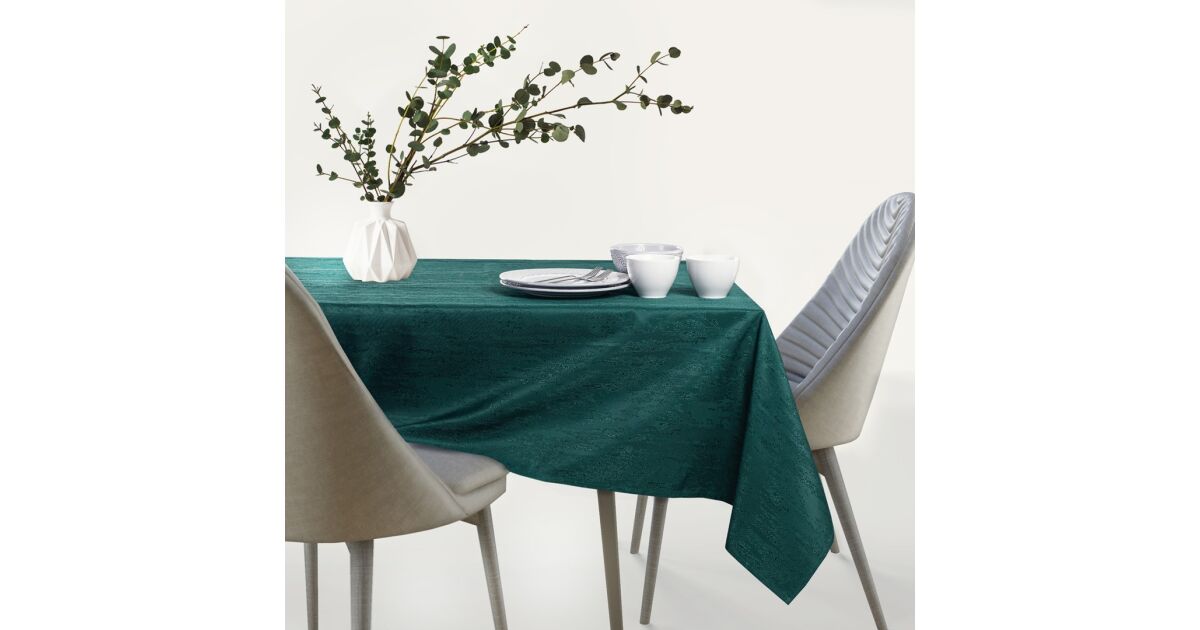 Ożyw swoją jadalnię obrusem AmeliaHome Vesta, który łączy elegancję z praktycznością! Ten piękny obrus w kolorze butelkowej zieleni z wytłaczanym wzorem to idealny wybór do nowoczesnych domów.