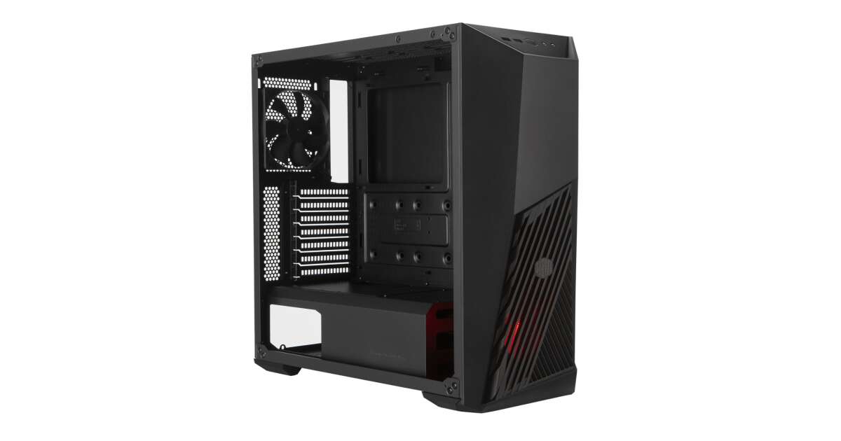 Cooler Master MasterBox K501L. Układ: Midi Tower, Model: PC, Kolor produktu: Czarny. Obsługiwany typ zasilaczy: ATX, PS2. Zainstalowane wentylatory przednie: 1x 120 mm, Obsługiwana średnica wentylatorów przednich: 120,140 mm, Zainstalowane wentylatory tylne: 1x 120 mm. Obsługiwane rozmiary dysków twardych: 2.5,3.5". Szerokość produktu: 217 mm, Głębokość produktu: 499,5 mm, Wysokość produktu: 468,5 mm