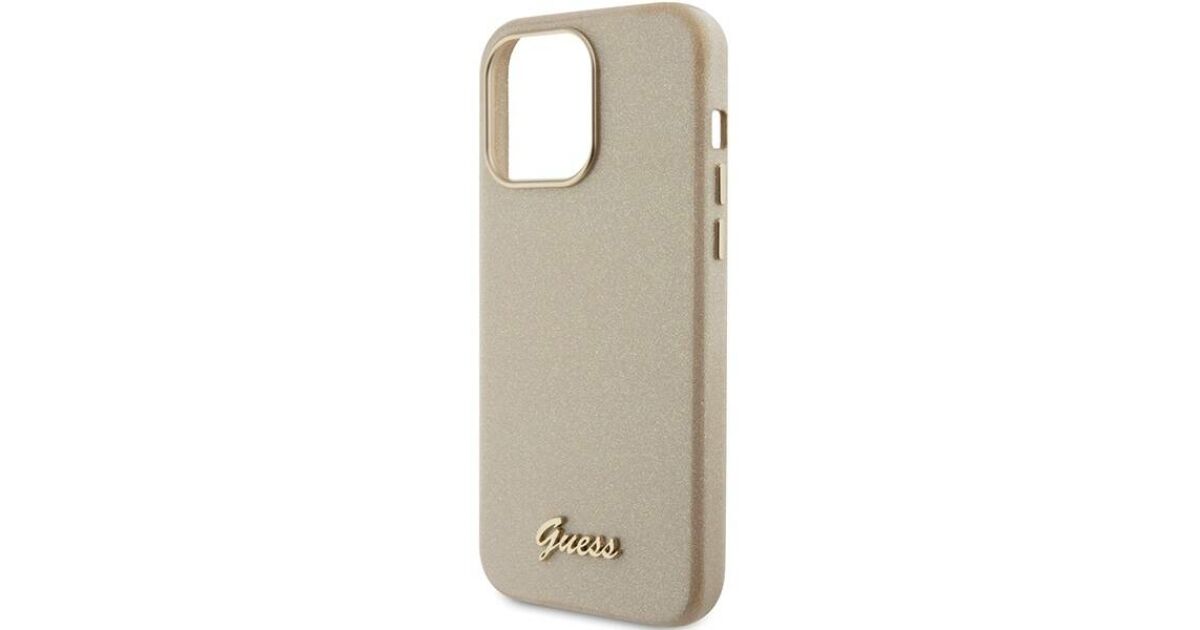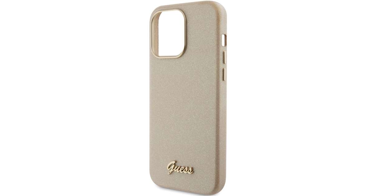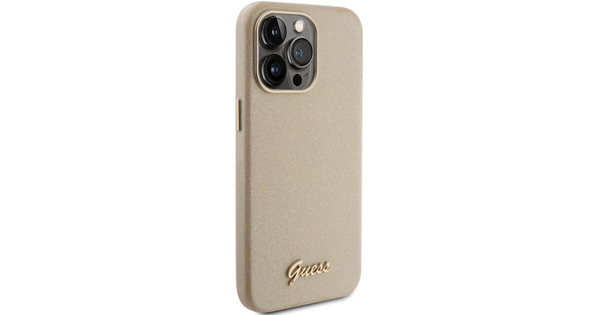 Guess GUHCP15XPGMCSD iPhone 15 Pro Max 6.7" jasnozłote etui twarde Glitter Glossy Scripty opis