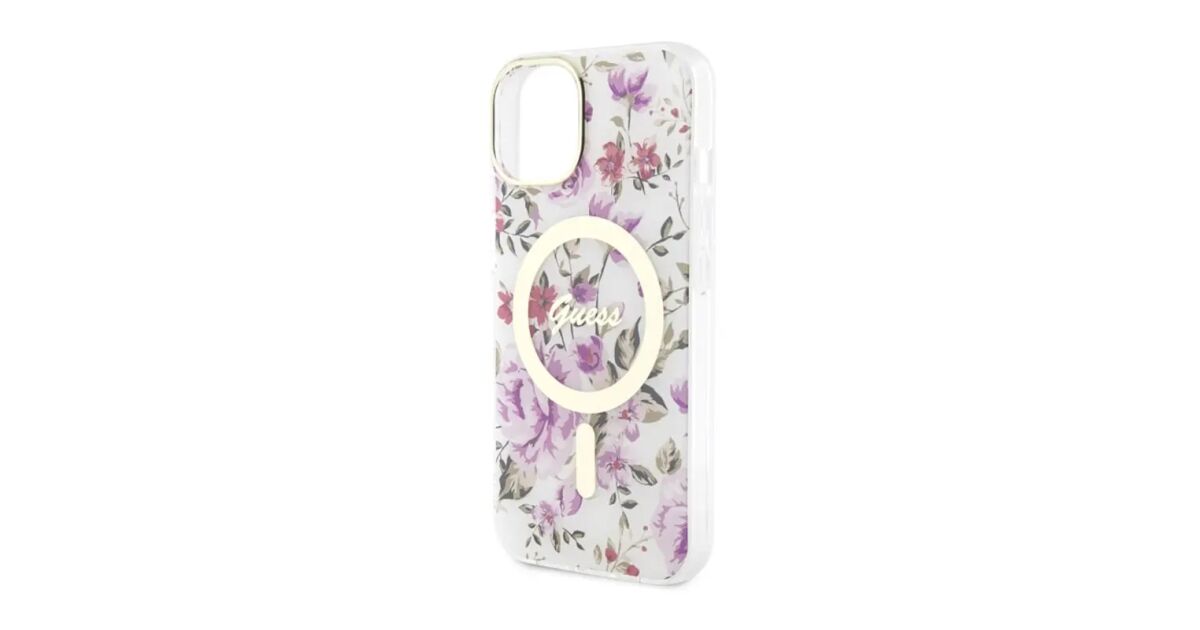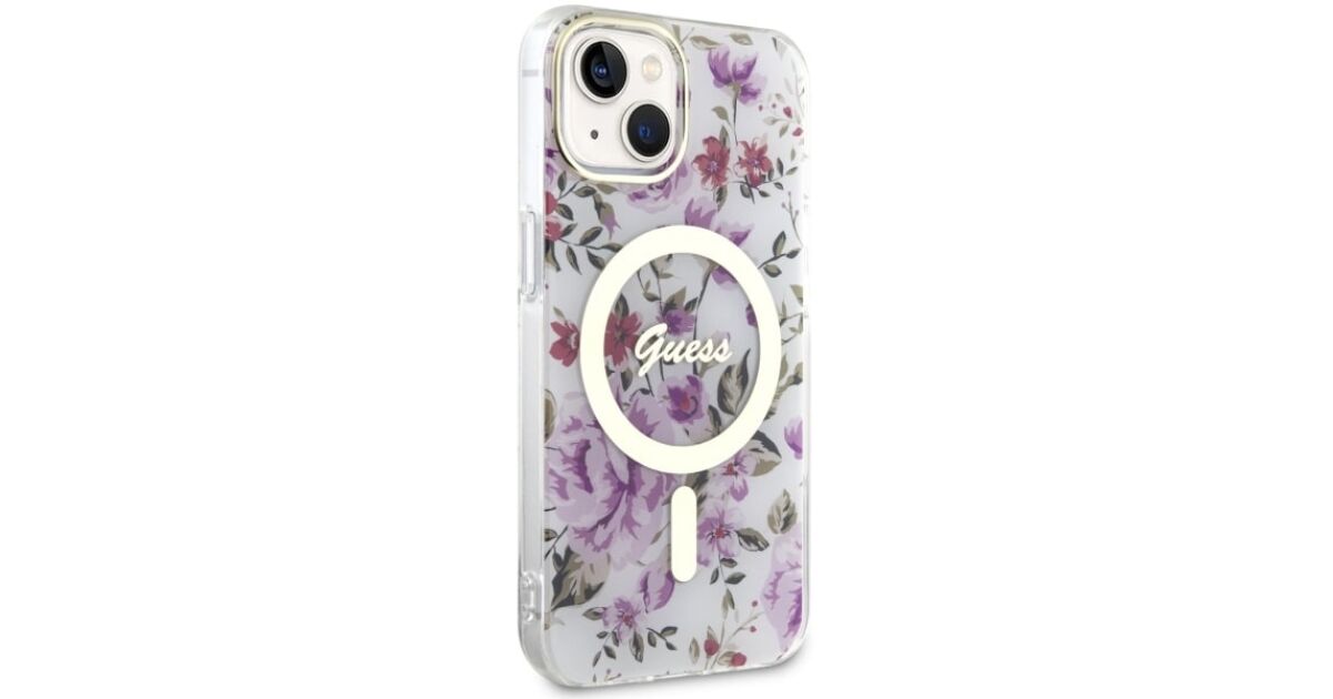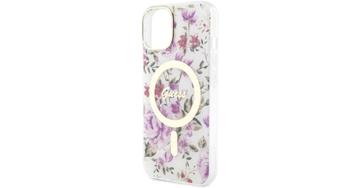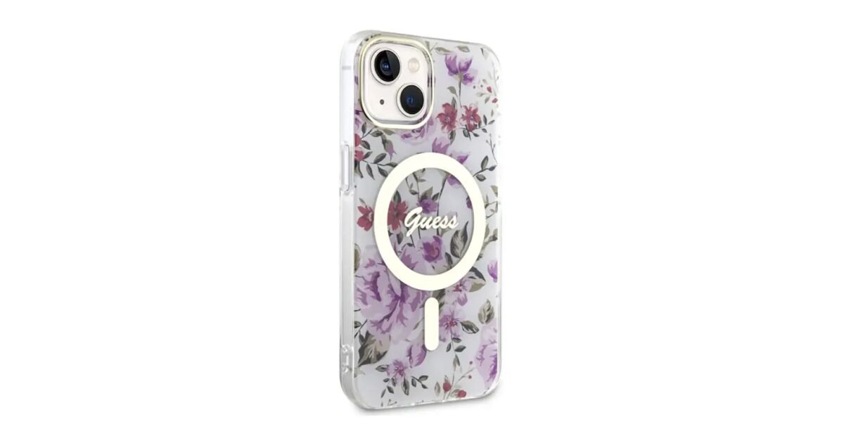 Guess GUHMP14MHCFWST iPhone 14 Plus/ 15 Plus 6.7" transparent hardcase Flower MagSafe