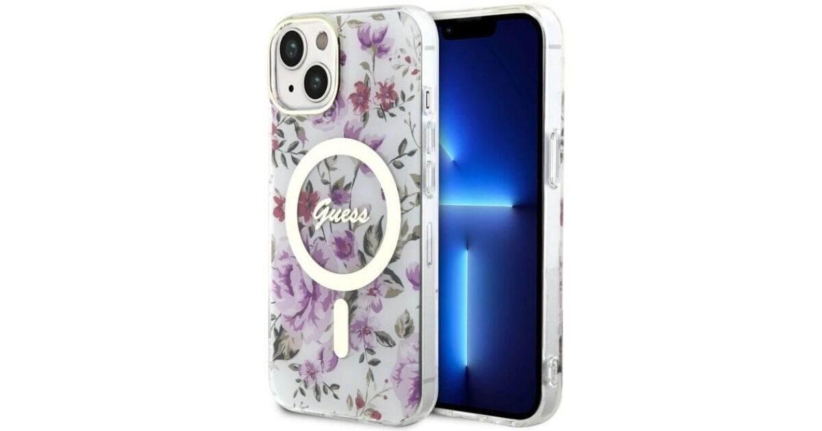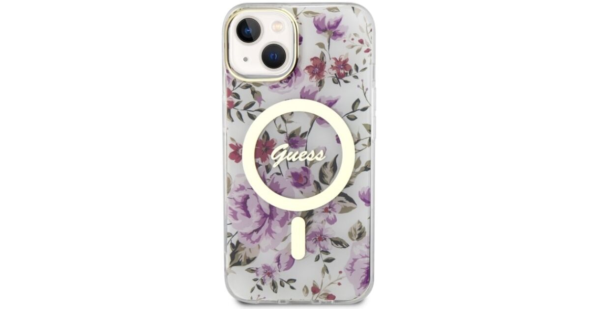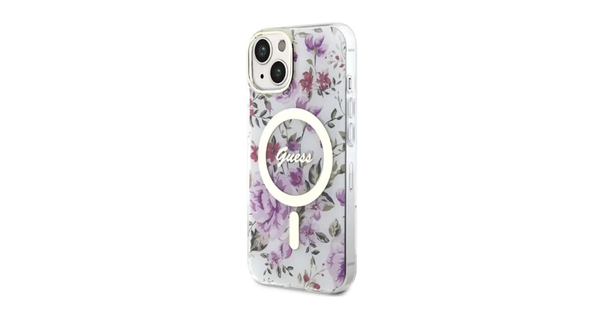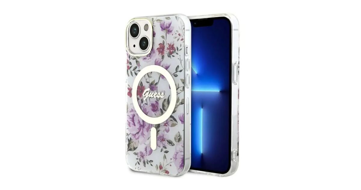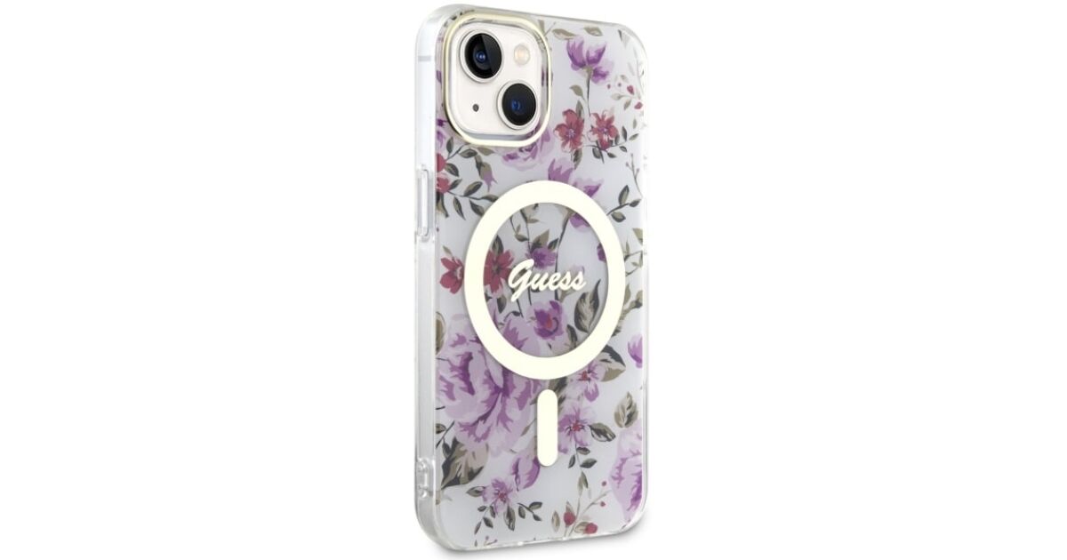 Guess GUHMP14MHCFWST iPhone 14 Plus/ 15 Plus 6.7" transparent hardcase Flower MagSafe