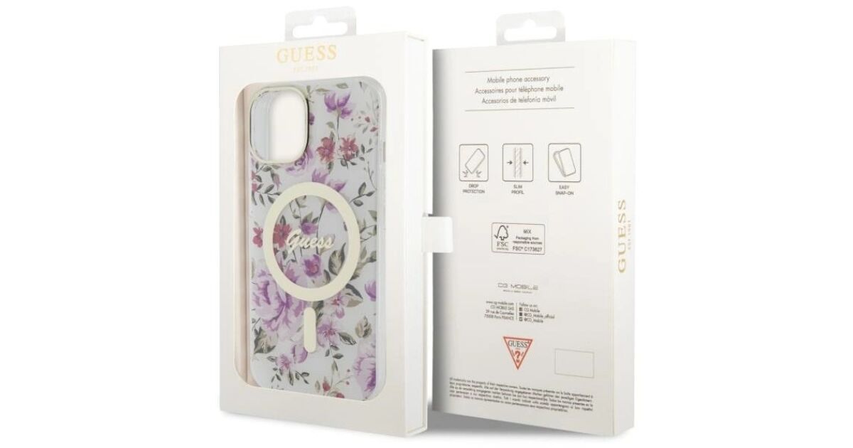 .boldy {font-size: 13pt; text-align: center; font-weight: bold} .h3ka {font-size: 15pt; ; font-weight: bold; text-align: center;} .tekst {font-size: 13pt; text-align: center;} .tabelka {border-collapse: collapse; width: 100%;} .tdka {border: 1px solid #dddddd;text-align: left;padding: 8px;} .trka:nth-child(even) {background-color: #dddddd;} Guess Flower MagSafe CollectionNajnowsza linia ochronnych etui Flower MagSafe została dedykowana dla użytkowniczek iPhone'ów, które cenią sobie elegancję i delikatność. Kolekcja jest sygnowana przez znany i ceniony dom mody Guess, zaprojektowano ją z myślą o zaspokojeniu nawet najbardziej wyrafinowanych kobiecych gustów. Pokrowce wyróżniają się wysoką jakością wykonania, niesamowitą funkcjonalnością oraz przepięknym wyglądem, co z pewnością odnajdzie każda miłośniczka kwiatowych motywów. Motyw polnych kwiatów jest często wykorzystywany przez projektantów czołowych domów mody jako symbol elegancji, subtelności i romantyzmu. Wykorzystanie tego motywu zaowocowało powstaniem przyjemnej dla oczu kolekcji dostępnej w kilku wersjach kolorystycznych, dzięki czemu każda kobieta odnajdzie pokrowiec odpowiedni dla siebie.Każdy pokrowiec z kolekcji Flower MagSafe wykonany jest z połączenia termoplastycznego poliuretanu (TPU) oraz poliwęglanu (PC). Wzmocnione przy pomocy PC plecki chronią urządzenie przed rozbiciem, zaś elastyczna ramka z TPU amortyzuje przed wstrząsami i uderzeniami. Case jest perfekcyjnie dopasowany, posiada wszelkie osłony na przyciski i wycięcia na porty.Etui zostały wyposażone w magnetyczny pierścień kompatybilny z bezprzewodową ładowarką MagSafe, zapewniając szybkie i łatwe ładowanie. Wbudowane w pokrowce magnesy są idealnie dopasowane do telefonu uzytkownika i zapewniają mocne przyleganie iPhone'a do ładowarki MagSafe. Magnetyczny pierścień perfekcyjnie komponuje się z kolorystyką pokrowca.Złote logo Guess w stylu vintage oraz pierścień MagSafe przyciągją uwagę i podkreślają wyrafinowaną estetykę etui. Pokrowce z kolekcji Flower MagSafe zapewnią modny wygląd i staną się niepowtarzalnym dodatkiem dla kobiet lubiących wyróżniać się z tłumu oraz ceniących ekskluzywne dodatki. Produkt wyprodukowany na licencji marki Guess. KolekcjaFlower MagSafe TypHardcaseMateriałTPU/PCKolorTransparentKompatybilność iPhone 14 Plus 6.7" / 15 Plus 6.7"