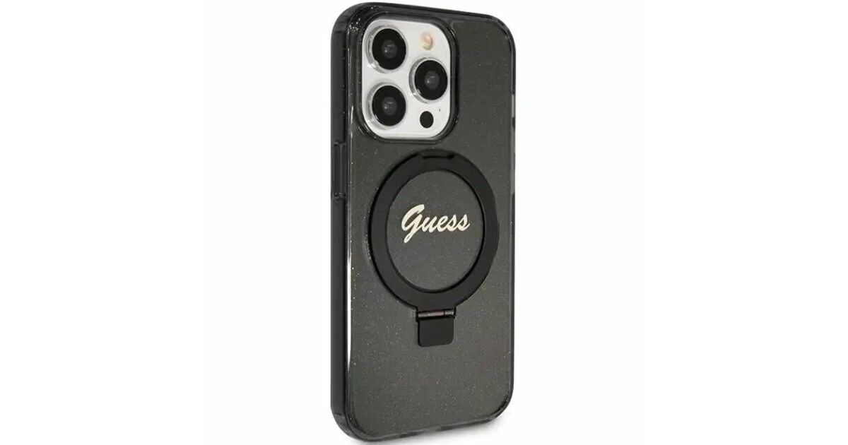 Guess GUHMP15XHRSGSK iPhone 15 Pro Max 6.7" czarny/black hardcase Ring Stand Script Glitter MagSafe