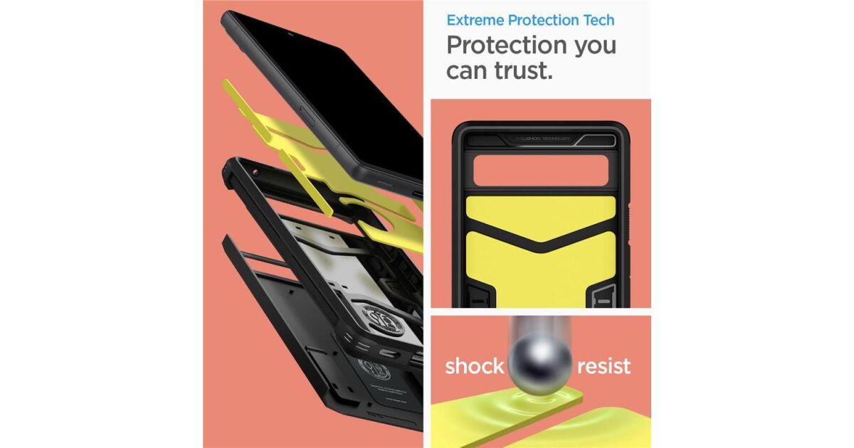 Puzdro Tough Armor od Spigenu je novým krytom spoločnosti. Jeho dvojdielna konštrukcia je vyrobená z oteruvzdorného termoplastu a polykarbonátového výstužného rámu. Vo vnútri krytu je výplň v podobe technologickej peny, ktorá poskytuje dodatočnú vrstvu ochrany pred nárazmi alebo pádom zariadenia.Puzdro je vybavené nožičkou, ktorá vám umožní jednoducho sledovať dianie na displeji telefónu bez toho, aby ste ho museli držať. Puzdro je perfektne osadené a neobmedzuje možnosť bezdrôtového nabíjania. Mierne vyvýšený tvar krytu okolo fotoaparátu a obrazovky ho chráni pred poškriabaním tým, že telefón zdvihne tesne nad rovný povrch. Má kryty tlačidiel a výrezy na porty.Tough Armor je puzdro, ktoré bolo podrobené testom zdatnosti na pád z výšky až 1,2 m 26-krát, čím získal americký vojenský certifikát MIL-STD 810G-516.6.VLASTNOSTI PRODUKTU:- 100% originál- Zabalené v originálnom obale- Minimalistický dizajn- Ergonomický- Štíhly tvar- Dvojdielna konštrukcia- Extra pena ako dodatočná ochrana - Vstavaná noha- Matný povrch- Precízne vyrobené- Má vojenský štandard pádových testov (MIL-STD 810G-516.6)- Perfektne prispôsobené- Jednoduchá montáž a demontážSET OBSAHUJE: 1 x Etui Spigen Tough Armor