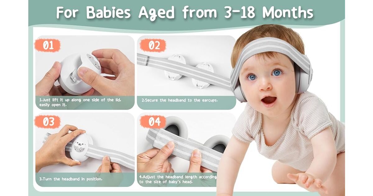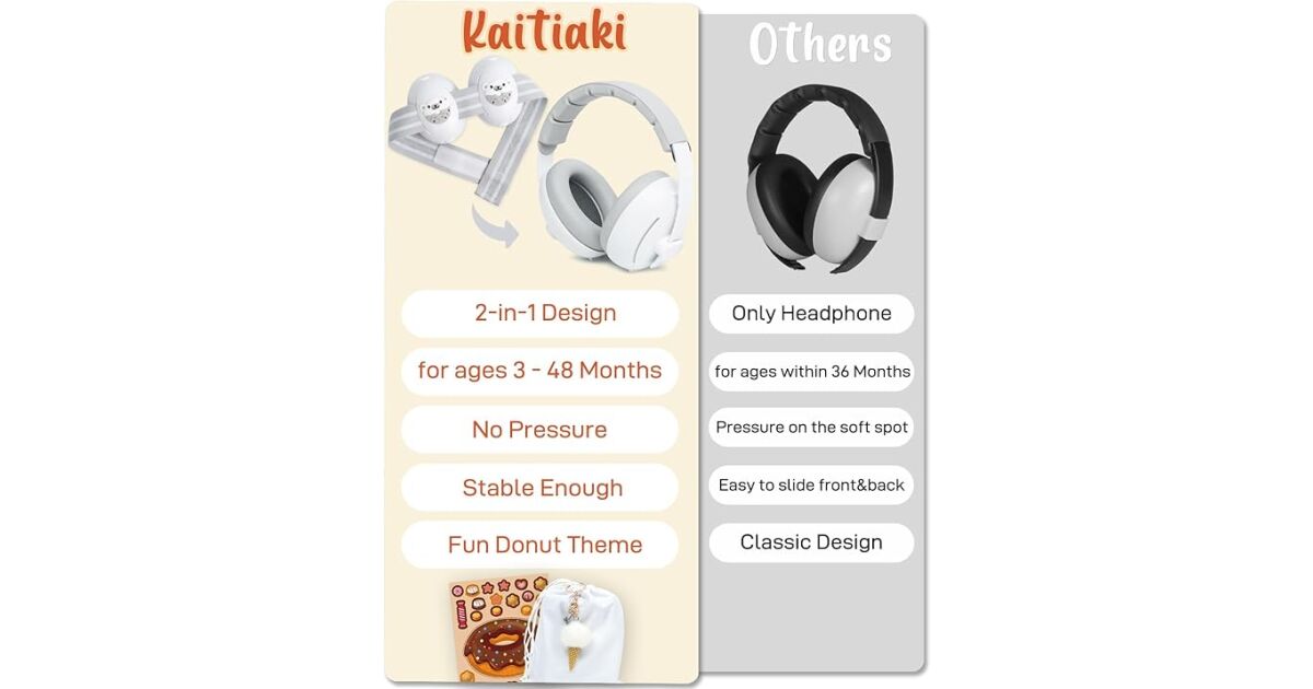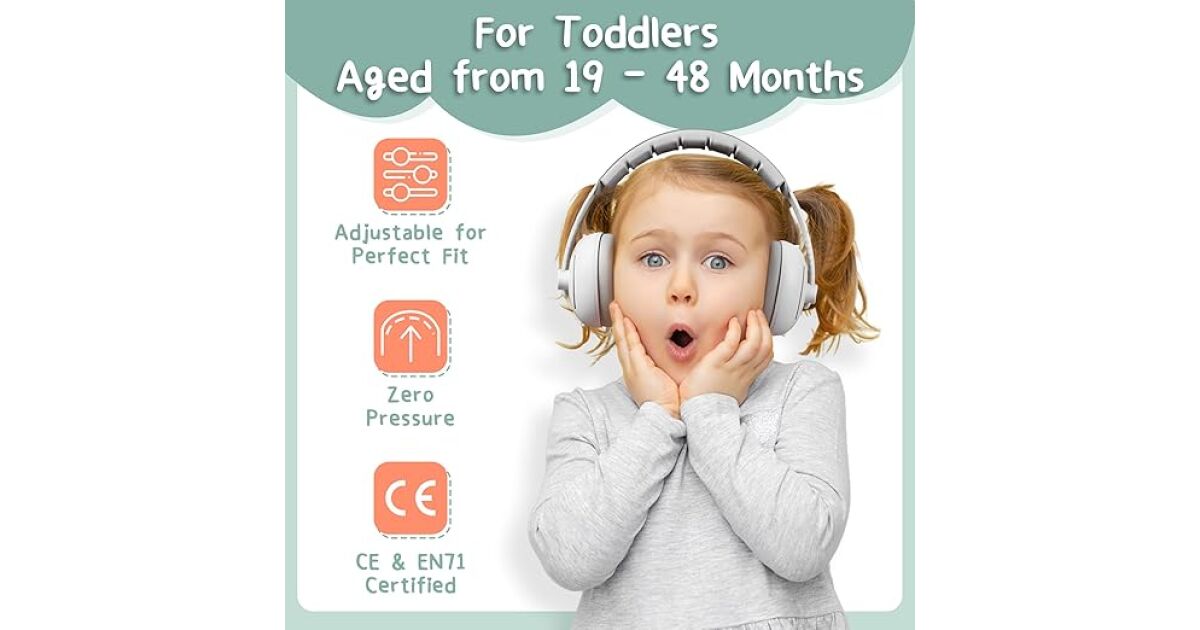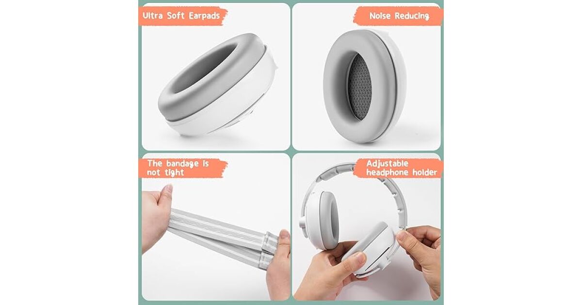 - Miękkie, wygodne poduszki: Nauszniki mają miękkie wyściełanie, dzięki czemu są wygodne w noszeniu dla niemowląt i małych dzieci. Bez ucisku na głowę!