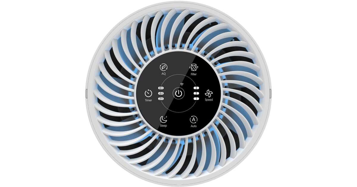- Wbudowany czujnik jakości powietrza: Stale monitoruje jakość powietrza i sygnalizuje aktualny poziom zanieczyszczenia za pomocą diod LED oznaczonych kolorami w oparciu o AQI (Air Quality Index).