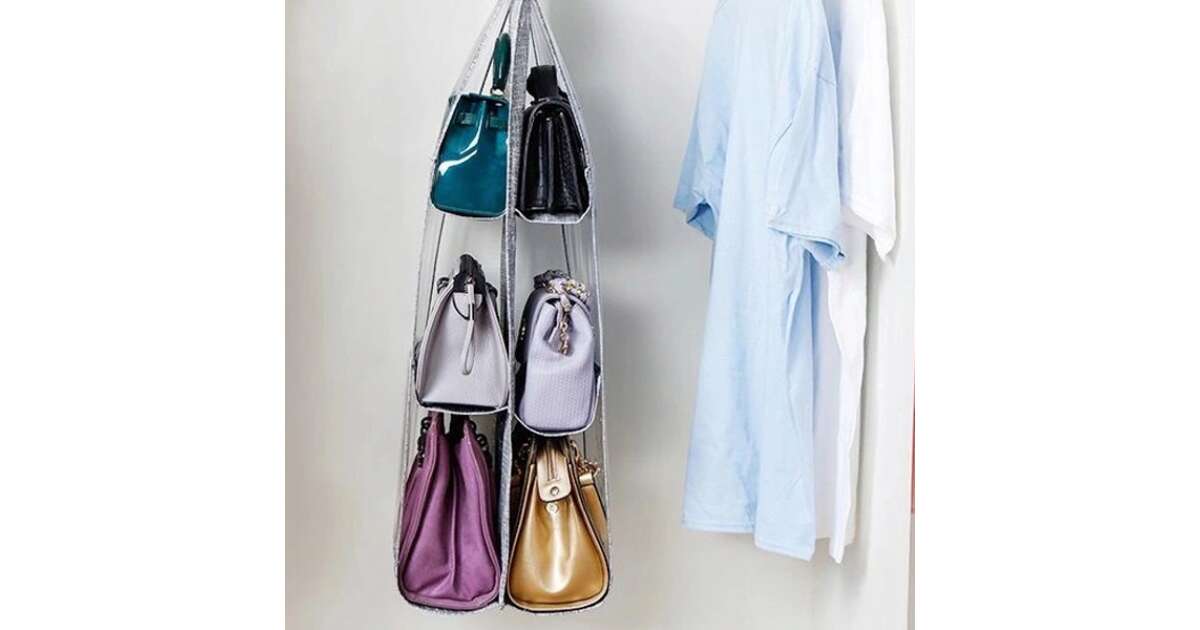 Koniec bałaganu w szafie! Ten praktyczny organizer na torebki, wieszany w szafie, pomoże Ci uporządkować Twoje torebki. Posiada 8 przezroczystych kieszeni, dzięki czemu zmieści się w nim nawet 16 torebek. Dzięki metalowemu haczykowi łatwo go powiesić w szafie i zaoszczędzić miejsce.
