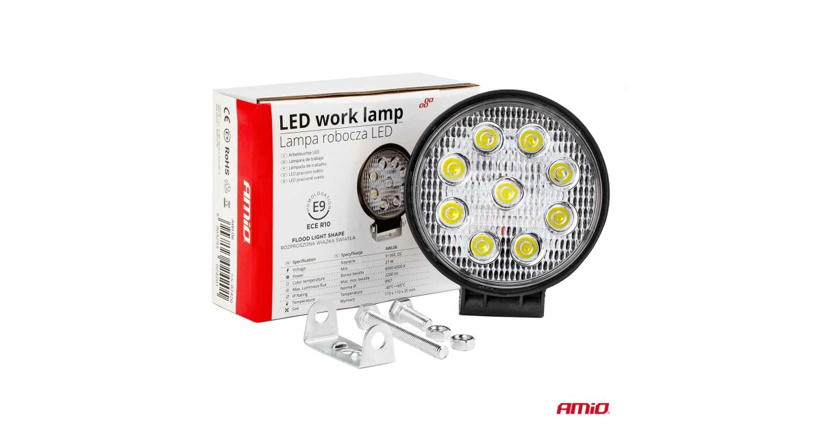 Projektor LED do pojazdów terenowych, ATV, SSV, kolor 6500K, LED FLOOD, 27W, napięcie 9 - 36V, średnica Ø110 mm