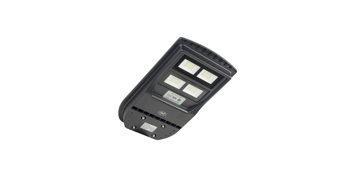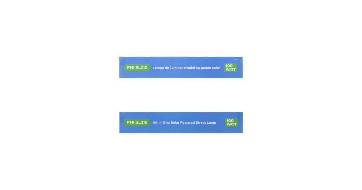 Lampa oświetlenia ulicznego PNI SL210 100 W, z wbudowanym panelem słonecznym 10 W, 6500 K, 1000 lm, 2 x wbudowany akumulator 10 Ah, mikrofalowy czujnik ruchu opis