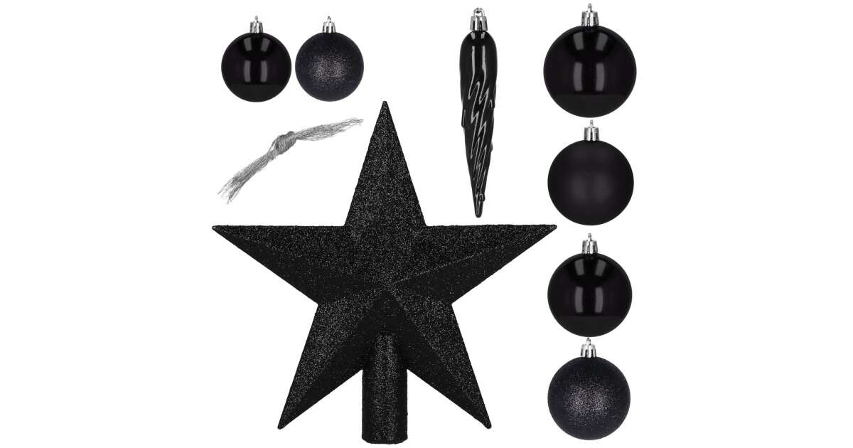 Czarne ozdoby świąteczne Springos Zestaw 33 eleganckich bombek, sopli i gwiazdek ✨