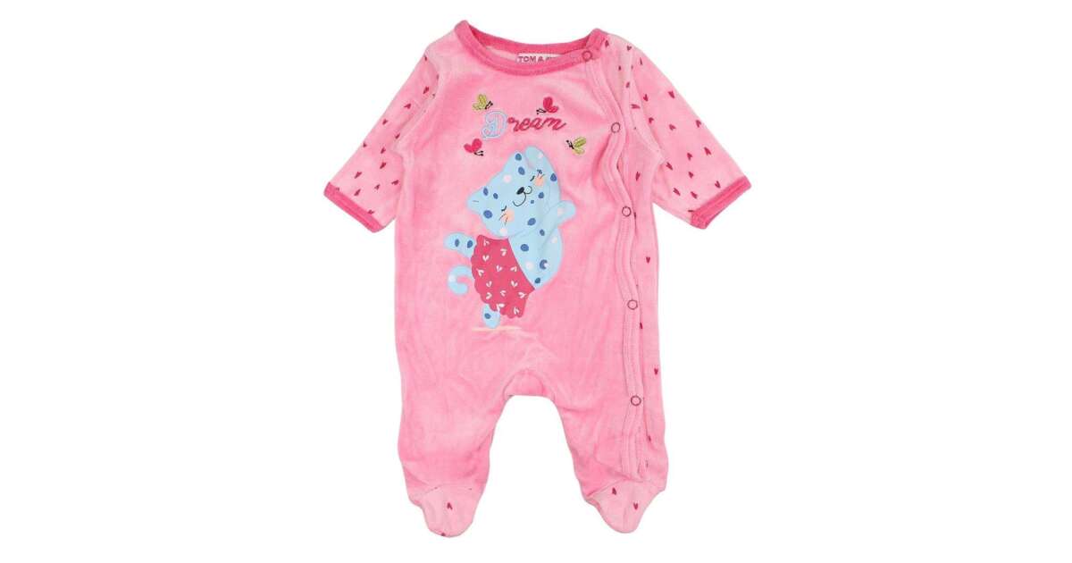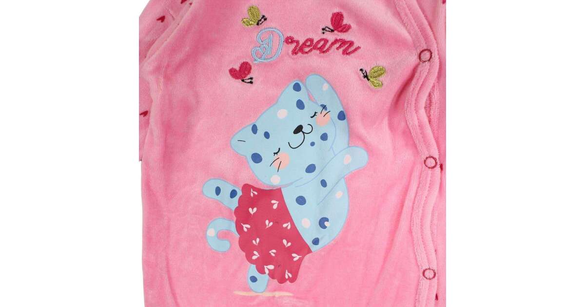 Ten śliczny, różowy pajacyk pluszowy to idealny wybór dla dzieci w wieku 0-1 miesiąca (56 cm). Radosny wzór z kotkiem i miękki materiał gwarantują komfortowy sen i zabawę.