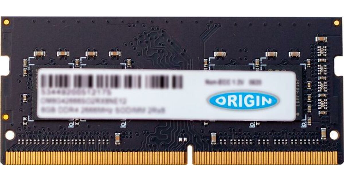 Origin Storage 16GB DDR4 3200MHz SODIMM 2RX8 Non-ECC 1.2V. Przeznaczenie: Laptop, Pamięć wewnętrzna: 16 GB, Układ pamięci (moduły x rozmiar): 1 x 16 GB, Typ pamięci wewnętrznej: DDR4, Prędkość zegara pamięci: 3200 MHz, Rodzaj pamięci: 260-pin SO-DIMM, Opóźnienie CAS: 22